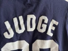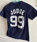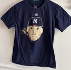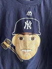 Step up your game day attire with the Aaron Judge Emoji New York Yankees Majestic Youth T-Shirt. Perfect for any young fan eager to show their support for the pinstripes, this vibrant blue shirt features the iconic New York Yankees logo along with a playful Aaron Judge emoji, making it a standout piece of fan gear. In gently used condition from original owner and a smoke free home. Crafted for comfort and style, this unisex children's size medium (10/12) shirt is designed to keep up with the excitement of the regular season and beyond. Whether you're at the game or just enjoying a day out, this shirt is a must-have for any aspiring Yankee fan looking to celebrate their team in a fun and fashionable way.