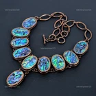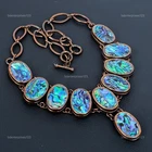 Welcome to bdenterprises123 Abalone Shell Gemstone Copper Chain Engagement Electroformed Necklace Jewelry Handmade Necklace, Wire Wrapped Necklace, Wire Wrapped Jewelry, Copper Pendant, Copper Wire Necklace, Wrapped Jewelry, Wire Wrap Necklace, Wire Wrap Jewelry SKU : HZN-54 Gemstone : Abalone Shell Stone Shape : Oval Metal Purity : Unknown Copper Length : 18 Inches Width : Inches Copper has been used for jewelry making for thousands of years, dating back to ancient civilizations such as the Egyptians, Romans, and Aztecs. Copper was valued for its beauty, versatility, and durability, and was often used to make everything from jewelry and coins to cookware and tools. In addition to its historical significance, copper jewelry also offers several benefits. Copper is a natural conductor of heat and electricity, which makes it ideal for energy healing and therapeutic purposes. Wearing copper jewelry is believed to have various health benefits, such as improving circulation, reducing inflammation, and boosting the immune system. Some people also believe that copper jewelry has the ability to balance energy and improve mood. For Mother's Day Gift For Father's Day Gift For Promise For Valentine's Day For Halloween Party For Christmas Day Gift For New Year Party For Mom For Her If you can't find the information you need or need some advice for your design? Feel free to contact us. We are fast to reply :) All our work is made by hand with Love and Care in our workshop Thank you so much for visiting and hope you enjoy shopping with us bdenterprises123 is committed to delivering the best quality sterling silver jewelry to customers. As a handmade jewelry manufacturer, we offer an extensive selection of copper gemstone jewelry that showcases the brilliance of our craftsmanship. We are an experienced handmade jewelry supplier with expertise in embellishing gemstones to suit every style. We offer you the liberty to create your jewelry ensemble with sparkling, earthy, and pure gemstones. Our Talented artisans masterfully handcraft each piece of jewelry you see here. Our pieces are made with genuine gemstones. The one-of-a-kind piece you see here is the same exact piece you will receive.