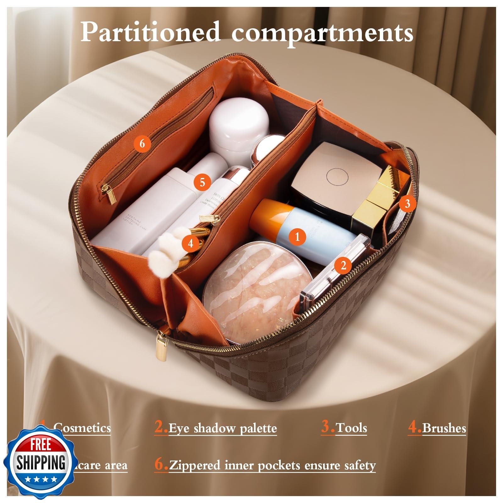 Abiudeng Travel Makeup Bag,Large Capacity Toiletry Bag Cosmetic Bags for Travel Essentials,Waterproof Portable Pouch Open Flat Makeup bag Organizer with Divider and Handle(Checkered-Brown) Features Spacious Yet Compact Design: This toiletry bag (9.4x4.7x4.3 inch) features 180° lay-flat access and multiple compartments to organize all travel essentials. All the cosmetics needed for travel can be carried in one bag while maintaining neat separation Comprehensive Upgrade: Crafted with premium PU material, both exterior and inner lining resist water/stains. Wipe-clean surfaces make maintenance effortless. Enhanced brush slot is locked securely at base, outperforming old design Smart Partition System: Thoughtfully designed compartments with waterproof inner layers prevent product leaks. The scratch-resistant zippered sections keep makeup brushes separate from liquid products. Quick-access layout eliminates messy digging through belongings Versatile Usage: Lightweight yet durable structure meets TSA carry-on requirements. Perfect as a cosmetics bag, travel toiletry bag, home organizer, medicine storage case, jewelry keeper, or tech accessory pouch Perfect Gift for Jet-Setters: Available in multiple stylish patterns to complement any traveler's aesthetic. Premium cosmetic case combines practical features with fashionable appeal---the ultimate travel companion for women on the go Shipping Free & Fast Shipping: We offer free shipping to most of the USA with a normal delivery time of 3-7 days. However, due to the current situation, additional delivery time (up to 3 weeks) may be required for some items. Alternative Carriers: We may use alternative carriers (e.g., USPS, FedEx, UPS) to ensure your package arrives safely and on time. Due to the use of multiple carriers, we are unable to provide a tracking number automatically. Handling Time: Orders are processed and shipped within 1-2 business days of receiving cleared payment. Shipping Restrictions: Shipping to Alaska, Hawaii, Puerto Rico, Guam, and other US territories may incur shipping charges or delivery restrictions. Please contact us before ordering, or your order can be refunded/cancelled. State Restrictions: Certain items may not be shipped to California due to state regulations. Contact for Tracking Updates: If you require tracking updates or have any concerns about the delivery of your order, please feel free to contact us, and we will be happy to assist you. Return Policy 30-Day Hassle-Free Returns: If you are not completely satisfied with your purchase, you can return the item for free within 30 days of receiving it for a full refund or exchange. Easy Return Process: Contact us, and we will provide you with a prepaid return shipping label and detailed instructions. No Restocking Fee: There are no restocking fees for returns. However, the buyer is responsible for return shipping costs if the return is not due to a seller"s error. Refund Processing: Refunds will be processed within 1 business day of receiving the returned item in its original condition. Feedback Your feedback is extremely important to us. We strive to provide the best products and customer service possible. If you are satisfied with your purchase, please take a moment to leave us a positive review. If you have any concerns or issues with your order, please contact us before leaving negative feedback. We are committed to resolving any problems and ensuring your satisfaction. Contact Us If you have any questions or concerns, please feel free to reach out to our customer support team. You can contact us through the eBay messaging system. We are available Monday to Friday, 9:00 am to 5:00 pm EST, and we will do our best to respond to your inquiry within 24 hours. Thank you for supporting our small family business!