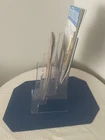 This display rack is in very good condition. Are acrylic and very sturdy. Measures 13.5” tall by 9.25” wide. Wonderful item for your business or home office use. Can hold many items.
