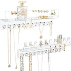 Return Policy Fast Delivery Trusted seller Acrylic Hanging Jewelry Organizer Wall Mounted Jewelry Holder with Floating Shelf, Necklace Holder Organizer, Stud Earring Organizer and Ring Holder for Women Girls (2 Pack) Product Description 2 Set Wall Jewelry Organizer in Different Styles: With sizes of 13.4 x 4 inches. Made of premium transparent acrylic, this compact and functional jewelry storage would be a nice addition to your home décor. 10 Ring Organizers in 2 Sizes: Featuring 5 ring holders in 14 mm and others in 16 mm, it can storage at least 10 rings from ring size 3 up. It’s easy to slide rings on and off. Totally 65 Earring Slots: Holds about 32 pairs of earrings or studs. The slots are quite convenient for earrings to slip into without removing the backings. 24 Sparkling Necklace Hooks: With individual diamond like cut hooks, it space out necklaces to prevent tangling. All your necklaces are easy to grab and go! Clear Acrylic Shelf: Perfectly holds perfume, watches or bracelets. This open wall mounted jewelry display offers better visibility into your jewelry. You can easily see and find them now. 2 Ways to Install: The jewelry rack can be attached with 2 screws or 2 adhesive tapes. Each jewelry wall hanger comes with 2 screws/ 2 plastic anchors and 2 clear double sided tapes. Shipping Returns Payment Shipping Shipping is FREE to all addresses other than APO/PO boxes in the lower 48 states. All our stock ships from US-based warehouses. Shipped via USPS or UPS (depending on location and package weight) Unless stated otherwise, all orders will ship within 24-72 hours of your payment being processed. Check our feedback to see the great reviews of FAST shipping we offer. Returns Seller does not accept returns Payment We currently accept payment via eBay managed payments only. Once payment is cleared, we will dispatch your shipment within 1-3 business days. Please refer to the "Shipping" tab for more information regarding shipping speed to your destination.