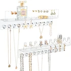 Acrylic Hanging Jewelry Organizer Wall Mounted Jewelry Holder with Floating Shelf, Necklace Holder Organizer, Stud Earring Organizer and Ring Holder for Women Girls (2 Pack) Product Details Item Package Quantity: 2 Color: Clear with Ring Holder Brand: Oaque MPN: Does not apply UPC: Does not apply EAN: Does not apply Color: Clear with Ring Holder Brand: Oaque Material: Acrylic Style: Clear Special Feature: Jewelry Organizer Recommended Uses For Product: Ring Target Audience: Women, Girls Shape: Rectangular Occasion: Wedding, Christmas, Birthday Mounting Type: Wall Mount Target Audience: Women, Girls Brand Name: Oaque Manufacturer: Oaque Finish Types: Transparent Acrylic Material Type: Acrylic Shape: Rectangular Color: Clear with Ring Holder Occasion: Wedding, Christmas, Birthday Style Name: Clear Closure Type: Slide Number of Items: 2 Jewelry Storage Type: Jewelry Board Number of Compartments: 1 Mounting Type: Wall Mount Number of Drawers: 2 2 Set Wall Jewelry Organizer in Different Styles: With sizes of 13.4 x 4 inches. Made of premium transparent acrylic, this compact and functional jewelry storage would be a nice addition to your home decor. 10 Ring Organizers in 2 Sizes: Featuring 5 ring holders in 14 mm and others in 16 mm, it can storage at least 10 rings from ring size 3 up. Its easy to slide rings on and off. Totally 65 Earring Slots: Holds about 32 pairs of earrings or studs. The slots are quite convenient for earrings to slip into without removing the backings. 24 Sparkling Necklace Hooks: With individual diamond like cut hooks, it space out necklaces to prevent tangling. All your necklaces are easy to grab and go! Clear Acrylic Shelf: Perfectly holds perfume, watches or bracelets. This open wall mounted jewelry display offers better visibility into your jewelry. You can easily see and find them now. 2 Ways to Install: The jewelry rack can be attached with 2 screws or 2 adhesive tapes. Each jewelry wall hanger comes with 2 screws/ 2 plastic anchors and 2 clear double sided tapes.