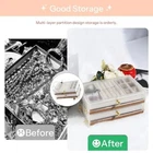Return Policy Fast Delivery Trusted seller Acrylic Jewelry Box & Organizer with Wavy Look Design with Solid Wood Dividers and 2 Drawers for Ring, Bracelet and Earring Organizer Is a Must Have Women's Jewelry Box for Modern Home Decor! Product Description SIZE: Measures 4.6IN H, 5.4IN W, 9IN L, easy to store in any space, perfect jewelry storage solution for home or travel. HIGH QUALITY MATERIAL: Made of highly transparent acrylic with sturdy solid wood compartments, which not only increases the durability of the jewelry box, but also enhances the overall texture. Ensure the jewelry box is durable, maintains its bright appearance and is not easily damaged. Home Decoration Enthusiasts: Whether you are a young person who loves to decorate your home or a mature person seeking to enhance the aesthetics of your interior, this uniquely designed acrylic jewelry box will be a highlight of your home décor, adding a modern touch. MULTIFUNCTIONAL DRAWER DESIGN: Comes with 2 drawers for easy categorization and storage, storing rings, bracelets and earrings separately, ensuring that each type of jewelry has its own space, avoiding tangling and staying organized. The drawers are cleverly designed and easy to pull open, making it simple and quick to find and access your jewelry, ideal for efficient use in your busy daily life. ACRYLIC JEWELRY ORGANIZER: Unique wave texture not only enhances the visual appeal, combined with 2 solid wood compartments, but also adds a touch of fashion to the home, suitable for placing on the dresser, nightstand or any free corner. Shipping Returns Payment Shipping Shipping is FREE to all addresses other than APO/PO boxes in the lower 48 states. All our stock ships from US-based warehouses. Shipped via USPS or UPS (depending on location and package weight) Unless stated otherwise, all orders will ship within 24-72 hours of your payment being processed. Check our feedback to see the great reviews of FAST shipping we offer. Returns Seller does not accept returns Payment We currently accept payment via eBay managed payments only. Once payment is cleared, we will dispatch your shipment within 1-3 business days. Please refer to the "Shipping" tab for more information regarding shipping speed to your destination.
