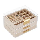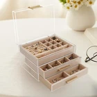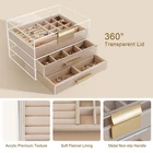 Acrylic Jewelry Box, Three-Layer Jewelry Organizer with 360° Transparent Lid, Suitable for Earrings, Rings, Bracelets, Necklaces, Stud Earrings, Bracelets, Watches (Transparent) Product Details Color: Transparent Brand: ESSDIAR MPN: Does not apply UPC: Does not apply EAN: Does not apply Color: Transparent Brand: ESSDIAR Material: Acrylic Style: Modern Special Feature: Transparent Recommended Uses For Product: Necklace, Bracelet, Ring, Watch, Earring Product Dimensions: 6.34"D x 8.38"W x 5.16"H Target Audience: Women Shape: Rectangular Occasion: Valentine's Day Item Dimensions D x W x H: 6.34"D x 8.38"W x 5.16"H Manufacturer: ESSDIAR Brand Name: ESSDIAR Recommended Uses For Product: Necklace, Bracelet, Ring, Watch, Earring Target Audience: Women Shape: Rectangular Occasion: Valentine's Day Style: Modern Color: Transparent Finish Type: Polished Inner Material: Flannel Material: Acrylic Closure Type: Undetermined Special Features: Transparent ESDIAR Acrylic Jewelry Box: Keep your precious jewelry organized and easily accessible with this high-quality three-layer organizer featuring a 360 transparent lid. Versatile Storage: Suitable for a variety of jewelry types including earrings, rings, bracelets, watches, and necklaces. Premium Materials: Made with acrylic premium texture and lined with soft flannel, this jewelry box ensures that your valuables are protected and displayed elegantly. Convenient Design: The 360 transparent lid allows for easy visibility of your jewelry collection, while the metal non-slip handle adds convenience for carrying and storing. Dimensions: With a size of 5 inches x 6.3 inches x 8.5 inches, this jewelry box is compact yet spacious enough to accommodate your favorite pieces. Upgrade your jewelry storage with the ESDIAR Acrylic Jewelry Box today!