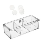 Feature: 1. Transparent Acrylic: This desktop storage box is made of premium transparent acrylic material, which can clearly display the stored jewellery and makeup items at a glance. 2. 3 Compartments: The cosmetic storage tray has 3 compartments, which can store different kinds of small items at the same time, improve the storage efficiency. 3. Dustproof: This acrylic organiser is dustproof design with lid, which can protect the storage items clean and tidy, no need to worry about dust dirtying the items inside. 4. Multifunctional: This multifunctional transparent storage box is perfect for storing cotton pads, cosmetics, etc. It can also store school office supplies, very versatile. 5. Compact Box: The modern and minimalist design of the storage box is very beautiful and practical, suitable for offices, bathrooms, dressers, desks and miscellaneous drawers. Specification: Item Type: Desktop Storage Box Material: Acrylic Package List: 1 x Desktop Storage Box