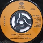 Artist: Adam Ant Title: Goody Two Shoes Format: 7" Label & Cat No: CBS A2367 Grading: EX Year: 1982 Additional info: plastic label, record has machine-cut centre, Goody Two Shoes/Red Scab *********************************************************************************** • thespacebar.records have been selling vinyl online for over 20 years. • We don't use stock photos. What you see is what you get. If we have multiple copies we'll send the best one. • If there are any issues when we come to pack up your record we will message to let you know and wait for you to confirm or cancel prior to shipping. • Much of our stock is in near-perfect condition. • Many items are unplayed but are graded conservatively as EX. • We're in the process of adding more photos to our listings. It's a big job. In the meantime if you'd like to see more images of any item, please send a message and we'll fast-track it. • We grade the vinyl 1st and the sleeve (if applicable) 2nd. • If there is only one grading and it seems very cheap, please check the item description carefully as we sell some records without sleeves and some sleeves without records. We always check with buyers before posting these items. • Singles that don't have a picture sleeve are supplied in an original company sleeve where possible. Otherwise they are sent in a plain white sleeve. • Records are supplied with a 400g polythene sleeve for protection. • To prevent seam splits, records are removed from their original sleeves for posting. • Everything is pressed in the UK unless otherwise stated in the item description. • More information/track listings/photographs available on request. Enjoy browsing our shop - Jeff & Catherine