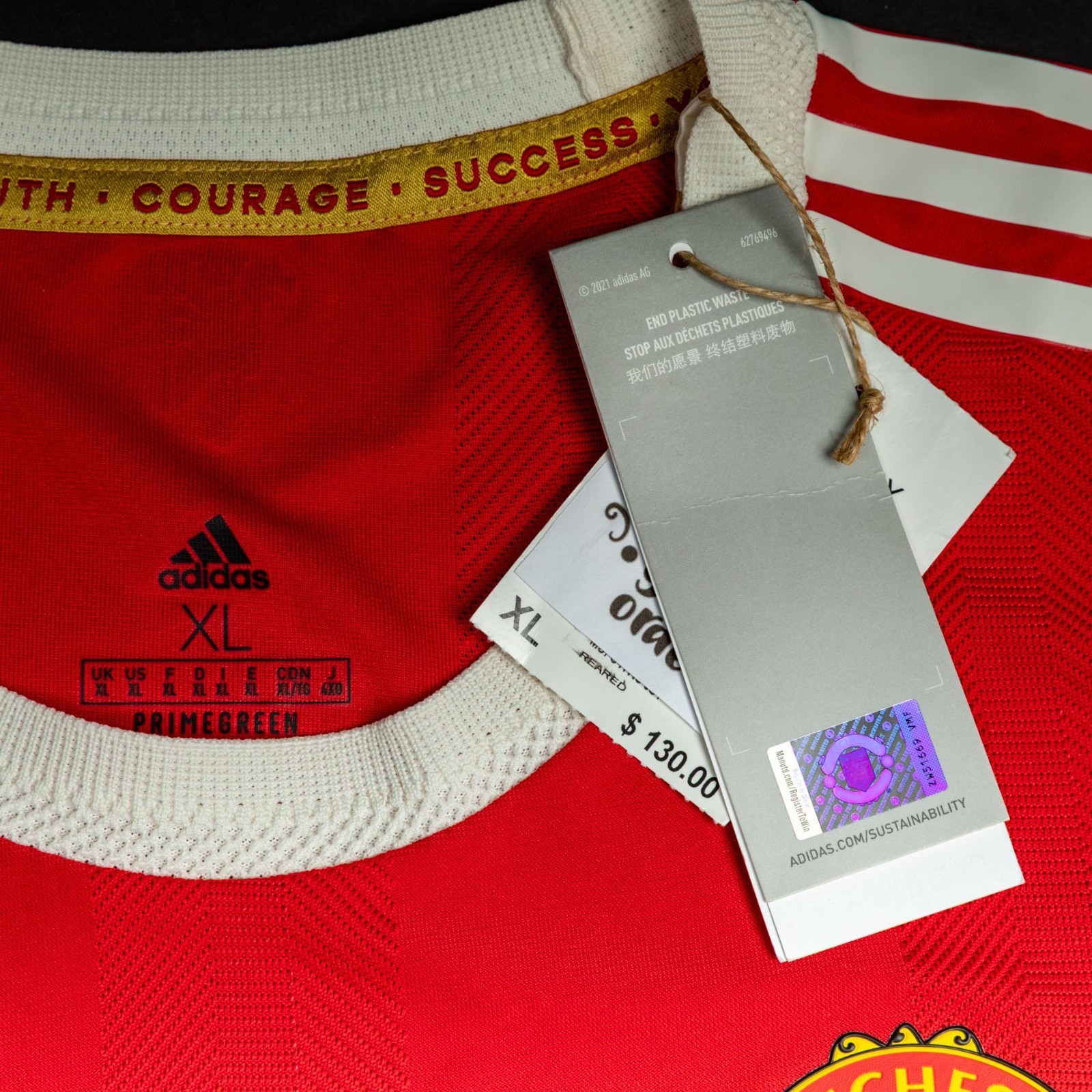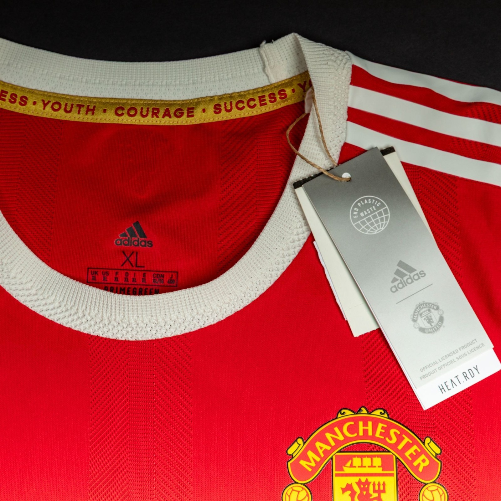 This authentic 2021/22 Manchester United Home Jersey by Adidas features the premium HEAT.RDY match-grade fabric engineered to keep players cool on the pitch. Designed in the classic MUFC red with white ribbed collar and sleeve cuffs, it includes the official Adidas logo, Manchester United crest, sponsor logos, and the Authentic Licensed Product badge. Made with Primegreen recycled materials, this top-tier version offers lightweight breathability, ventilation zones, and a tailored athletic fit. • Brand: Adidas • Condition: NWOT (New Without Tags Attached, Tags Included) • Team: Manchester United • Season: 2021/22 • Size: XL • Materials: HEAT.RDY Engineered Fabric, Primegreen Recycled Polyester • Retail Price: $130 • Type: Authentic Match Jersey • Features: Heat-applied crest, ventilation paneling, official licensed hologram tag, lightweight performance construction A premium authentic jersey perfect for collectors, fans, or training wear.