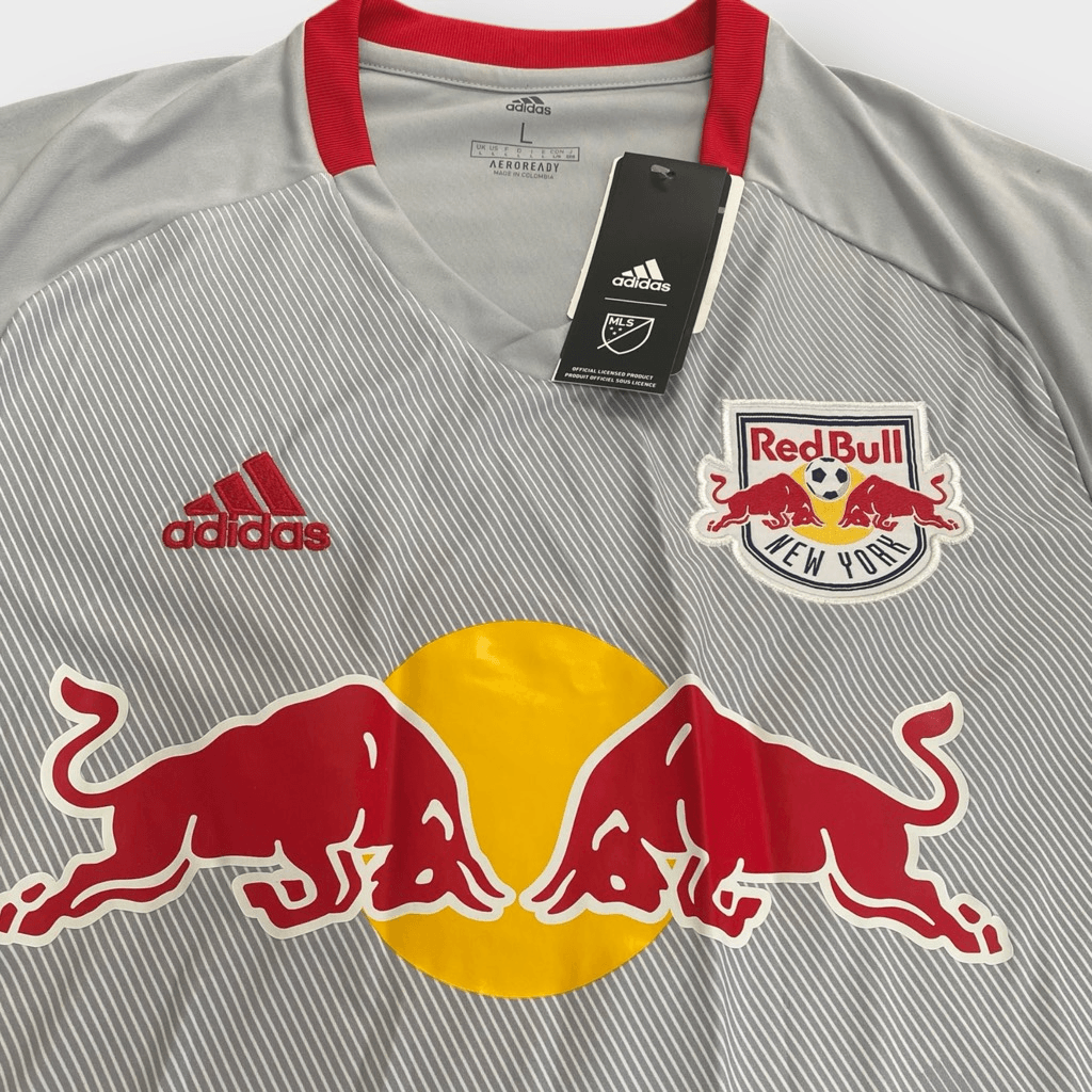 Adidas New York Red Bulls MLS Home Soccer Jersey Grey/Red GE5914 Mens size L New with Tags Comes from a pet/smoke free home. Carefully packaged and quickly shipped.
