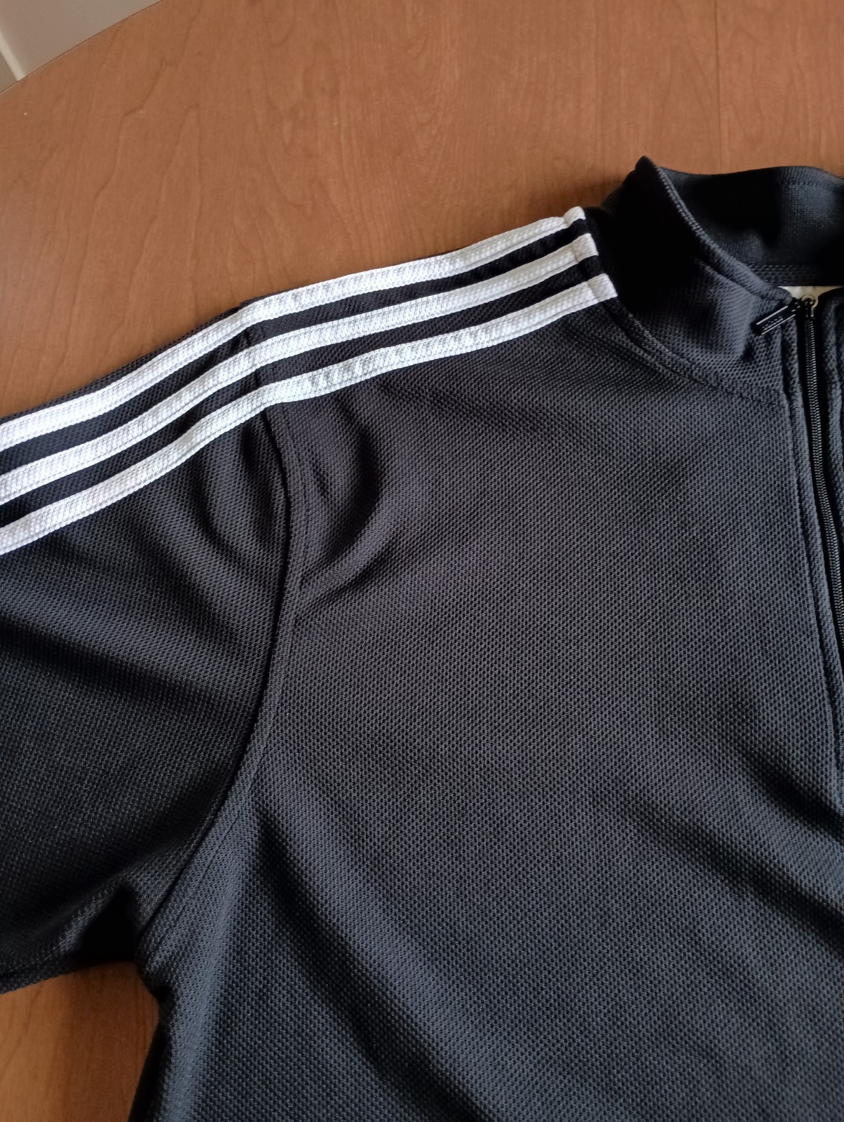 Condition is used/pre-owned - multiple small snagged threads in multiple areas, see photos, penny for size. Color is black with signature 3 stripes on sleeves Adidas text in front is embroidered. 1/4 Zip - zipper works as it should. Side tag says 07/04 Size says Medium - see photos for approximate measurements This is currently being stored in a smoke/pet friendly home (will be put back in packaging until sold) Please see all photos before purchasing Check out my other listings as well