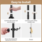 Tension Pole Adjustable Freestanding Coat Rack 56 to 125 inch floor to ceiling tension coat rack with 12hooks Non-slip bottom and top suitable for any floor 12 hooks for hanging coat, plant,hat, tie, bag and clothes UPGRADED STRONG MATERIAL: The coat hanger is made of upgraded sturdy material with coated surface to prevent rust and durability, able to withstand the weight of normal clothes and accessories such as scarves and hats. Tension Pole Coat Rack: Our coat rack features floor to ceiling adjustable design, providing more stability and less tipping compared to traditional freestanding coat racks.Hang more clothes and more securely and can also serve as a children's coat rackThis Freestanding coat Hanger supports adjustable heights from 56 to 125 inches, truly suitable for standing stably in any area.It can help you hang anything in places like the bedroom, living room, kitchen, and more. 12 Hooks Hanging More: This coat rack comes with 12 hooks, and its lightweight and compact standing style can help you hang coats,plant, bags, scarves, and other lightweight items in a very small space.It's a space-saving helper for you helps you save 99% of floor space. Non-slip Bottom & Top: To ensure a more stable standing, both the base and the top of this coat rack feature anti-slip frosted design. Whether facing a ceiling or various wooden floors, marble, or carpets, it maintains a stable standing without slipping. Easy to Install: Our coat rack is easy to install. Simply assemble the rods and hooks step by step, fix the bottom and top separately to the floor and ceiling to keep it level. One person can complete the installation in just 3 minutes. Ten-year warranty: If there are problems with the assembly and quality of the product please contact us immediately, we will provide you with the most attentive service until you are satisfied!We offer 24/7 online customer service and promise to respond to your emails within 12 hours. We are committed to ensuring a smooth and satisfactory shopping experience for you.