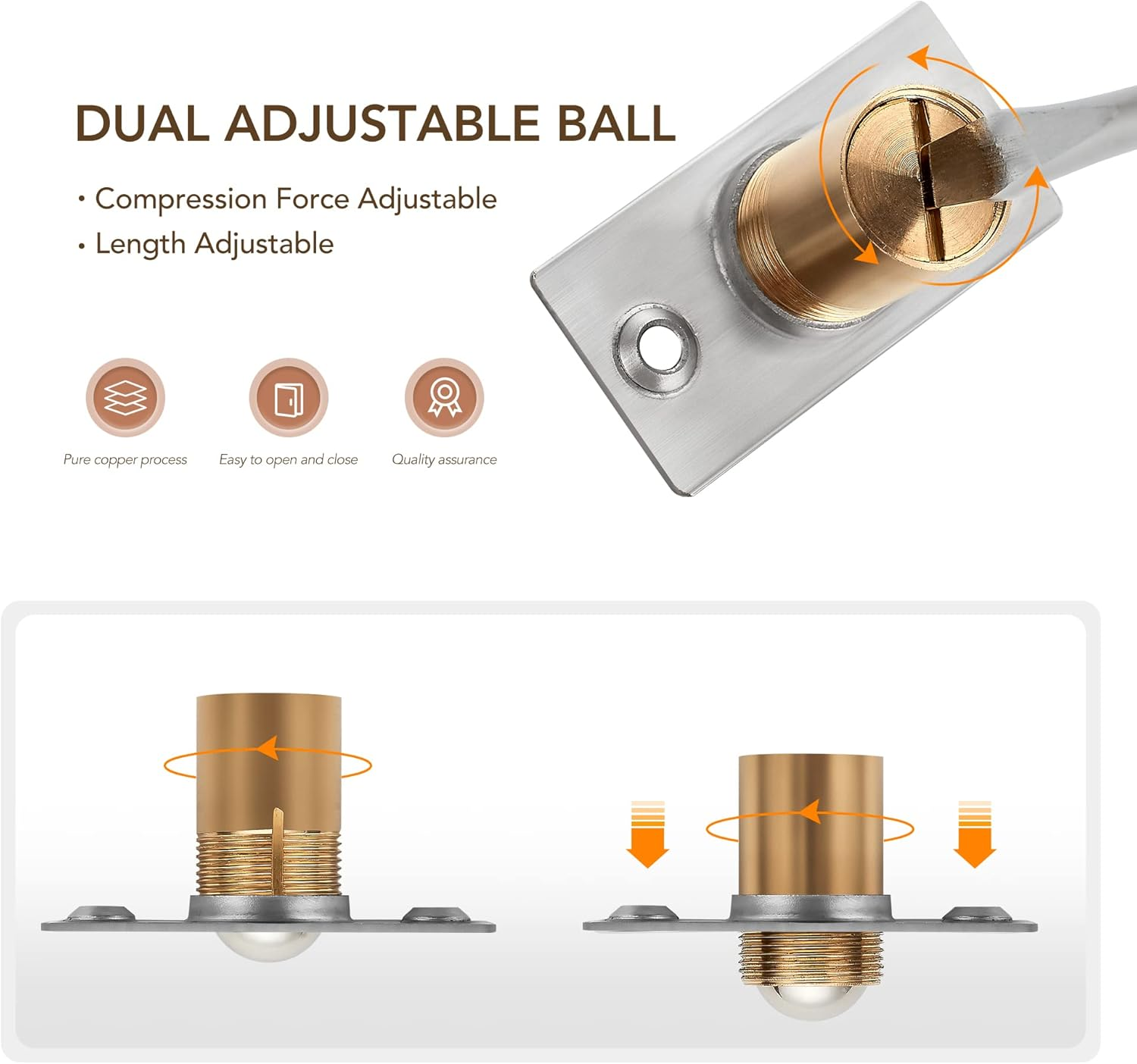 Adjustable Ball Door Catch, Closet Ball Bearing Door Latch, Solid Brass Body & Stainless Steel Strike Plate, 2 Pack, Silver Upgrade your daily routine with Adjustable Ball Door Catch, Closet Ball Bearing Door Latch, Solid Brass Body & Stainless Steel Strike Plate, 2 Pack, Silver — premium build for reliable performance and long-lasting value. Enjoy fast handling, friendly support, and a risk-free purchase backed by easy returns. Trusted seller with excellent feedback Popular item — often sells out quickly 30-day returns, no questions asked Key Benefits Feel the quality: durable materials and clean finish Save time: quick setup and easy everyday use Peace of mind: hassle-free support via eBay Messages Smart value: excellent price–performance for home, office, hobby, or professional use Item Specifics Item Package Quantity 2 Batteries Required? No Color Silver Material Metal Item Weight 0.12 Kilograms Installation Type Screw-In Batteries Included? No Number of Pieces 2 Exterior Finish Brass Package Dimensions 4.45 x 3.7 x 2.05 inches Size 2 Pack Description All-Metal Ball Catch: This ball door catch consists of five parts: an adjustable solid copper base, fatigue-resistant elastic spring, wear-resistant anti-rust ball, solid brass body, and anti-rust stainless steel plate Dual Adjustable Features: Adjustable Length: Rotate the brass ball body to adjust the ball length for various door seam thicknesses. Adjustable Compression Force: Rotate the bottom of the catch to control the bouncing ball's compression strength Color Accordance: Each package of door catch we provided the same color with the strike plate,which is more beautiful and harmonious for each pack of the closet ball door catch Dimention of the Catch: Faceplate measures 1"W x 2-1/8"H. Brass Body measures 8/12" diameter x 11/10" deep. Strike plate measures 1-3/8"W x 2-1/8"L. Fastening screws included Customer Support: If you're not satisfied, reach out to us. We’ll respond within 24 hours and do our best to resolve any issues Product description Ravinte Door Ball Catch 3 Colors Available 3.7 inches x 4.45 inches x 2.05 inches. Weight: 0.12 kg Package Includes 1× Adjustable Ball Door Catch, Closet Ball Bearing Door Latch, Solid Brass Body & Stainless Steel Strike Plate, 2 Pack, Silver User manual (if included) Invoice by email (VAT shown on request) Shipping & Returns Fast handling and dispatch from our warehouse Tracking provided for parcel shipments 30-day returns according to eBay listing settings Why Buy From Us? Top-rated customer experience Secure checkout through eBay Reliable packaging — arrives ready to use Limited availability on popular variants Don’t wait — click Buy It Now to secure your Adjustable Ball Door Catch, Closet Ball Bearing Door Latch, Solid Brass Body & Stainless Steel Strike Plate, 2 Pack, Silver today.