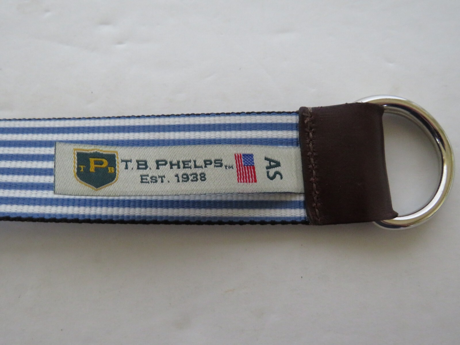 Belt - Men's - OSFM/Adjustable - Blue & White Stripe - Golf - by T.B. Phelps - Made in the USA - Measures Approximately 53 3/4" x 1 3/8" Good Condition. Thanks for Looking.