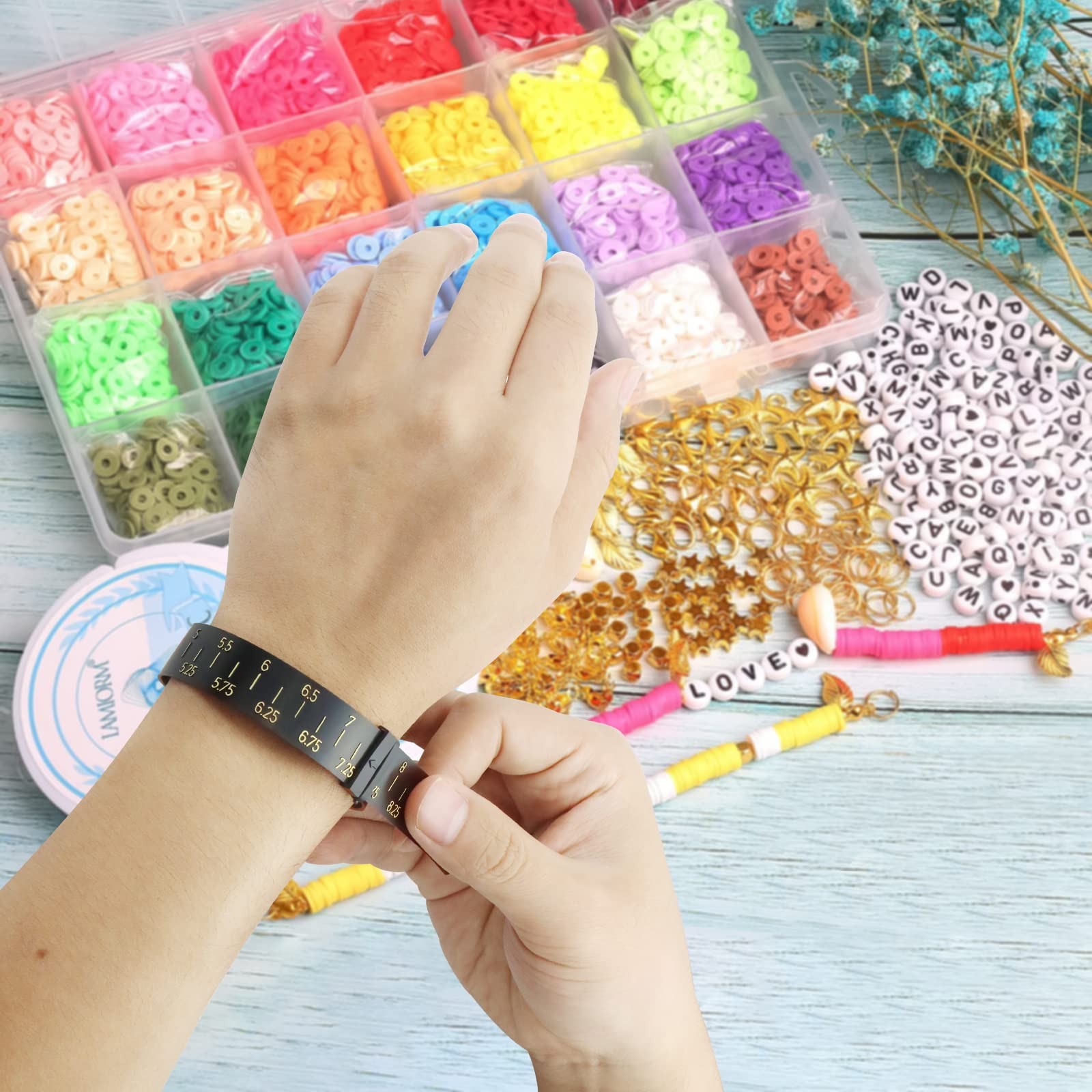 Specification: Material: Plastic Color: Black and White Package Includes: 1 x white clay beads bracelets sizing tool 1 x black heishi beads bracelets measuring tool Clay Beads Bracelet Accessories: When you're making heishi beads bracelet jewelry but don't know how long to string it, a wrist gauge measuring tool kit comes in handy to know the length of your wrist. Easy to Use: Just wrap the strap around the desired wrist, and then pass through the loop to get accurate polymer clay beads bracelet jewelry size. Easy to carry and use. Widely Used: Wrist ruler is suitable for the measurement of flat round polymer clay beads bracelets and bangles jewelry maker. It is the best accessory for checking the size of disc beads bracelets jewelry. High-quality Material: This clay beads bracelets jewelry measuring sizer is made of plastic, light weight, strong and durable, and reusable. The smooth surface will not hurt wrists. Package Includes: 1 x white clay beads bracelets sizing tool, 1 x black heishi beads bracelets measuring tool. Suitable for any clay beads bracelet jewelry maker.