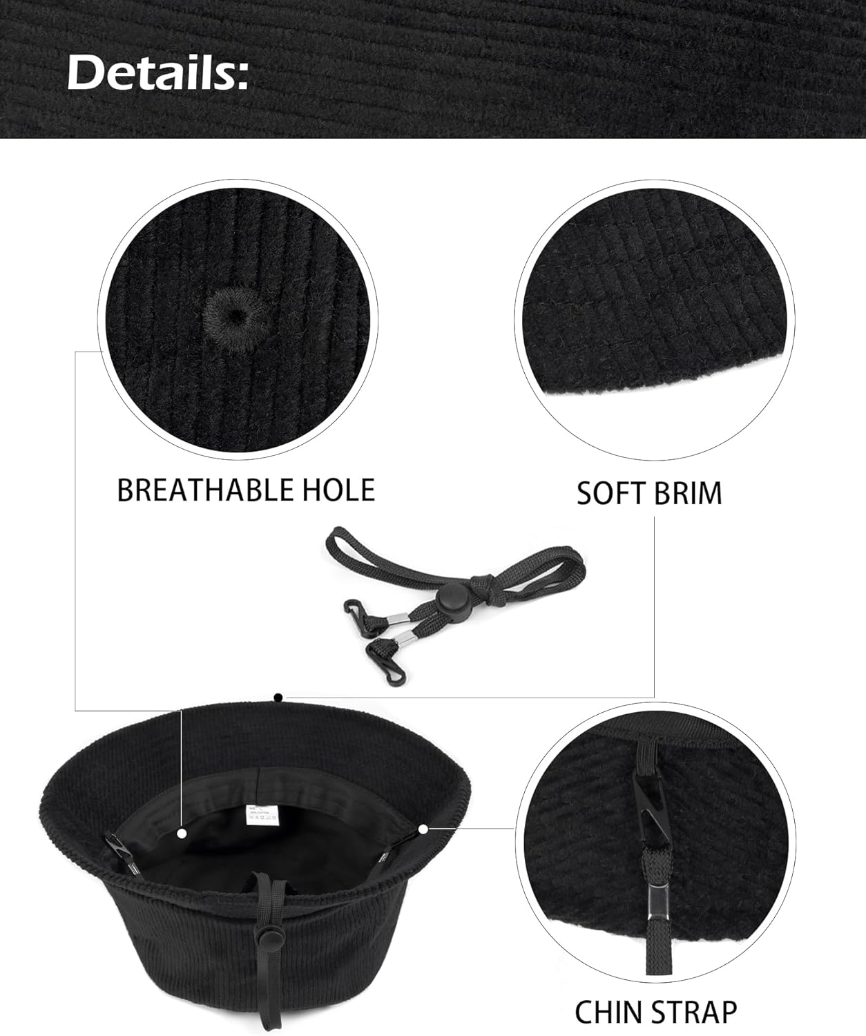 This corduroy bucket hat is a must-have! The soft, breathable cotton feels great, and the adjustable fit works for all head sizes. Perfect for sunny days—stylish, comfy, and well-made. Love the variety of sizes and the quality fabric. Great for fishing or just looking cool! Zylioo delivers fashion and function in one awesome hat.