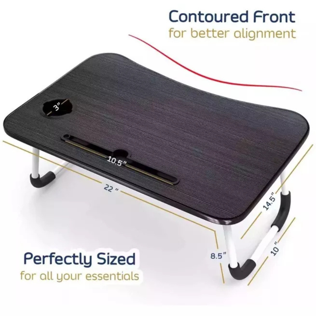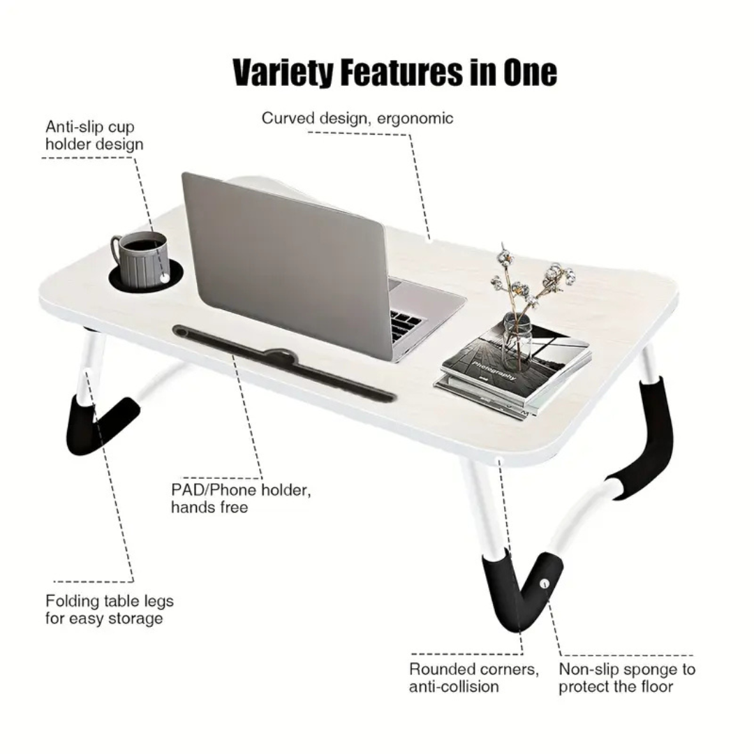 Laptop Tray Lap Desk Stand Foldable Bed Table Notebook Tray Cup Slot Adjustable Description: Upgrade your comfort and productivity with this Laptop Tray Lap Desk Stand, designed for versatile use at ho me, in bed, or on the sofa. Whether you're working, studying, or enjoying breakfast in bed, this foldable bed table provides a stable and spacious surface for your laptop, books, or snacks. Key Features: Adjustable Foldable Legs: Customize the height and angle for optimal ergonomics and easy storage when not in use. Spacious Desktop: Fits laptops up to 17", with extra space for a mouse, notebook, or phone. Built-in Cup Slot: Keeps your drink secure while you work or relax, preventing spills. Sturdy & Lightweight Design: Made from durable, eco-friendly materials with strong legs and non-slip bottom pads. Multi-Purpose Use: Ideal for laptop work, reading, writing, drawing, eating, or gaming in bed or on the couch. Stay comfortable and productive anywhere with this smart, portable desk solution!