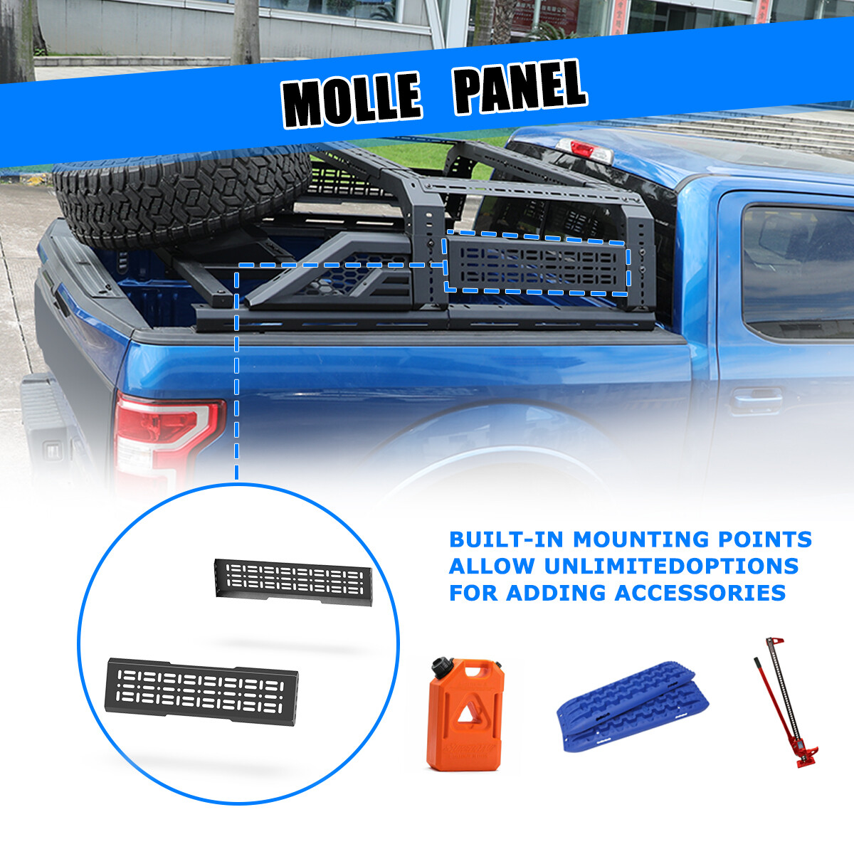 Store Categories Other Car Refrigerator Front Bumper Rear Bumper Fender Flares Inner Fenders Side Steps Running Board A-Pillar Light Mount Brackets Headlights Taillights Fog Lights LED Headlights LED Taillights LED Fog Lights Jeep Chevrolet Ford Toyota Dodge GMC More Roll Bar: https://www.ebay.com/itm/405272971219 https://www.ebay.com/itm/405256884904 https://www.ebay.com/itm/405270551962 Modular Overland Bed Rack (Front) Features: Mounting Base: ✴ Compatible with most retractable, roll-up, and folding bed covers. ✴ Bed covers will not be able to fold completely back. ✴ Can be secured by punching holes in the bed shoulders or Locked to factory side rails. LED Light Mounting Bracket: ✴ Pod light or Light Bar can be installed ✴ Adjustable position of mounting bracket ✴ Adjustable height range of 4.84-7.6inches Side Rail Mounting Bracket : Compatible with factory bed rail. Decorative Bezel: Honeycomb Mesh Allows DIY colour spraying. Modular Overland Bed Rack (Mid) Features: Mounting Base: ✴ Compatible with most retractable, roll-up, and folding bed covers. ✴ Bed covers will not be able to fold completely back. ✴ Can be secured by punching holes in the bed shoulders or Locked to factory side rails. ✴ SpareTyre Carrier can be installed above the base. Side Rail Mounting Bracket: Compatible with factory bed rail. Connection bracket: Connect to the Bed Rack(Front) Molle Panel Features: ✴ Side panels w/ plenty of long holes cutouts for adding accessories. Mount anything from lights, recovery tracks,jerry can,farm jack, fire extinguisher, bike mounts, etc. ✴ 2mm steel Construction. Spare Tyre Carrier Features: ✴ Can be mounted directly on the bed, but requires pre-punched holes and installation of the rivet nut. ✴ Compatible with most off-road tire. ✴ Available in 5mm steel plate. ✴ Width adjustment range 66.2-74.8 Inches. Compatibility ✴ For 1994-2010 Dodge Ram 1500/2500/3500; ✴ For 2011-2025 RAM 1500/2500/3500 (Not compatible for models with RamBox) ✴ For 1999-2025 Chevy silverado/GMC sierra 1500/2500HD/3500HD ✴ For 1997-2025 Ford F-150; ✴ For 2017-2025 Ford F-250/350 Super Duty; ✴ For 2000-2021 Toyota Tundra; ✴ For 2004-2024 Nissan Titan/Titan XD Specification ✴ Color: Black ✴ Materials: Q235A ✴ Placement on Vehicle: Rear ✴ Installation: Bolt-on, ✴ Attachment Type: Screw-On ✴ Items Included: Mounting Hardware ✴ Surface Finish: Black Powder Coated Steel ✴ Fitment Type: Direct Replacement ✴ Adjustable Width: 62.2~72.8 inch ✴ Adjustable Height : 14-19 inch ✴ Modular Overland Bed Rack (Front) Package Size: 33.66 *25.59*10.63 inch ✴ Modular Overland Bed Rack (Front) Package Weight: 82.67lbs ✴ Modular Overland Bed Rack (Mid) Package Size: 33.66*25.59*6.69 inch ✴ Modular Overland Bed Rack (Mid) Package Weight: 52.91 lbs ✴ Spare Tyre Carrier Package Size: 33.46*17.71*12.6 inch ✴ Spare Tyre Carrier Package Weight: 81.57 lbs ✴ Molle Panel Package Size: 27.56*7.87*5.51 inch ✴ Molle Panel Package Weight: 11.02 lbs Package List ✴ 1*Modular Overland Bed Rack (Front) ✴ 1*Modular Overland Bed Rack (Mid) ✴ 1*Spare Tyre Carrier ✴ 1*Molle Panel ✴ 1*Set of Mounting Accessories Payment Delivery details Terms of sales About us Contact us Payment We accept PayPal, credit card , Apple Pay & Google Pay etc. Delivery details All items will be shipped within 1-3 business days after payment received, we will try our best to ship out as soon as we can, hope for your understanding. Please double confirm your address and contact information, which will help the delivery faster and more accurately. Note :buyers who purchase international products need to pay import tariffs!!! Terms of sales Professional installation is highly recommended. Any problem of the item please feel free to contact us first , please D o Not leave negative feedback before that, or simply return it within 60 Days in original condition. We will resolve it for you ASAP. About us Any questions please do not hesitate to contact us directly by eBay message . We will reply you within 24 hours asap, thanks for your understanding. Contact us Should you have any problem or require any further information please feel free to contact us . If you are satisfied with our product and service, please kindly leave us a positive feedback. Popular Categories