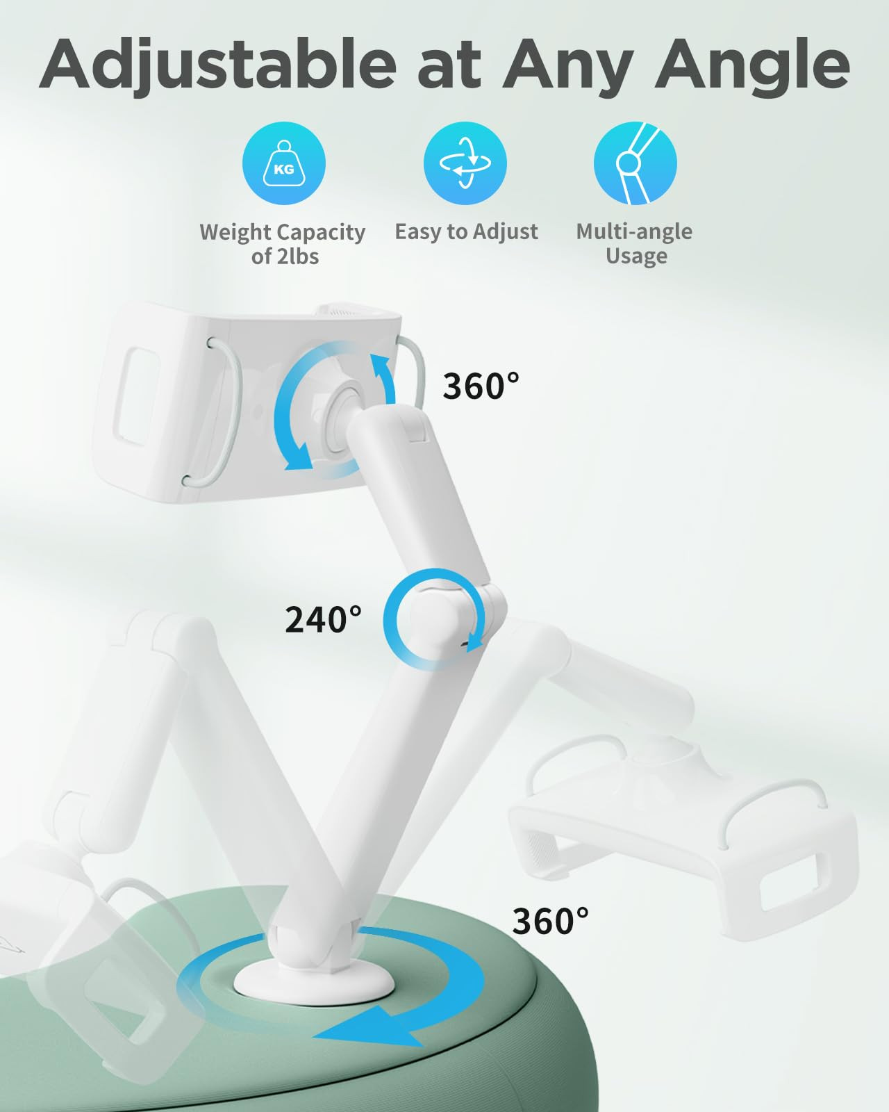 【WORRY-FREE AFTER- SALES SERVICE- 3 Years Free Quality Guarantee】 We will be here anytime to listen to your suggestions and solve your problems. We promise you a satisfactory reply within 24 hours for any problems! 【Crescent-shaped Ergonomic Design】 The crescent-shaped design of tablet holder pillow conforms to the principles of ergonomics and fits snugly against your belly, providing a comfortable and soft experience. 【Wide Compatibility】 Kindle holder is suitable for devices ranging from 4.7 inches to 15.6 inches, Compatible with Kindle Colorsoft kindle color, kindle paperwhite 2024, new iPad Mini 6, iPad Air 4, iPad Pro 11 / 12.9 inch, 2018 iPad Pro 10.5 inch, 2020 new iPad Air, iPad Mini, Kindle Fire HD 7 8 10, E-reader, iPhone 16 iPhone 16 Pro Max, iPhone 16 Pro Max, iPhone 15 14 13, iPhone 14 Pro, Surface Pro, Galaxy Tab, Switch and so on. 【Dual-Axis Design】 The kindle Colorsoft holder support arm has a dual-axis design that enables the bottom axis to rotate 360°, the middle axis to rotate 240°, and the clamp to rotate 360°, allowing users to adjust the angle according to their needs, so the phone stand can accommodate different usage scenarios, whether sitting, standing, or lying down. 【Environmentally Friendly Microbead Pillow】 The microbead pillow of tablet stand is soft, comfortably conforms to your lap and body, helps keeps the holder stable while in use, and steadies your reading. The pillow consists of food-grade EPS foam particles, and PC+ABS, the material used in the stand's construction is safe, environmentally friendly, and free from any toxic substances. 【Easy to Clean】 Kindle holder is easy to disassemble and it can be put in the washing machine for cleaning, ensuring hygiene and cleanliness at all times. Note: Please keep the product away from sharp objects and fire during use.