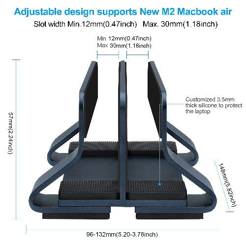 Bulk Order: More pcs, more discount! (Consult with us the details). Shipping Days: ≤10 pcs per Order: Within 3 days; >10 pcs per Order: Need consult with us first! Tool-Free Screws DOXONN vertical laptop stand adopts Quick-Release screws design, operation is convenient and concise, you can easily adjust the width manually no need other tools. Adjust Width: 12-30mm(0.47-1.18inch) (Support MacBook Air M2) Better Heat Dissipation Hollow design reduces the blockage of the heat dissipation holes and makes your laptop ventilate and dissipate more smoothly Better Protection 3mm thickness aluminum alloy material and multi-faceted high-grade silicone, the laptop holder vertical is non-slip, anti-scratch and anti-wear, protecting your laptop intimately Four Colors for Choise Perfect color matches for your computer 1 Slot 2 Slots Simplify Your Desktop Product Specification Model Name : One/Dual Slot Vertical Laptop Stand Model No. : DNO58/DND58 Colour : Midnight/Space Grey/Silver/Starlight Size : 148*(92-109)*60mm/ 148*(96-132)*57mm Compatibility : Support All Most Laptops Material : 6061 Aluminum Alloy + High-Grade Silicone Adjust Width: 9-41mm(0.35-1.61inch)/12-30mm(0.47-1.18inch) Weight : 218g/356g