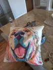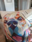 This Cute Pet Golden Retriever Dog Pattern Linen Throw Pillow is a charming addition to any home decor. Made of durable cotton linen fabric, this square pillow features a cute style with a print of a Golden Retriever dog. Measuring 17.72" in length, width, and height, it is recommended for use in a living room, home office, or even a coffee shop. This decorative pillow is machine washable and comes with a zipper closure for easy care. Add a touch of animal-themed flair to your space with this adorable Golden Retriever pillow. I have seen these on Amazon this one is signed Ines, it did come with a tag and I tore it off but this is an amazing pillow especially if you have a golden retriever I love all of the colors it feels like a burlap pillow to me and I guess this is the artist who signed it
