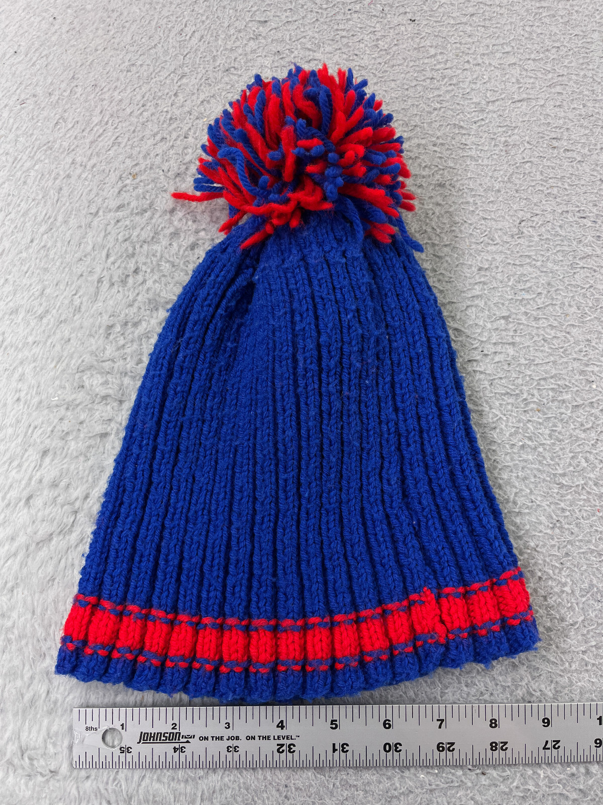 Adult Blue Red Knit Beanie with Pom for Snow Ski One Size Polyester Blend