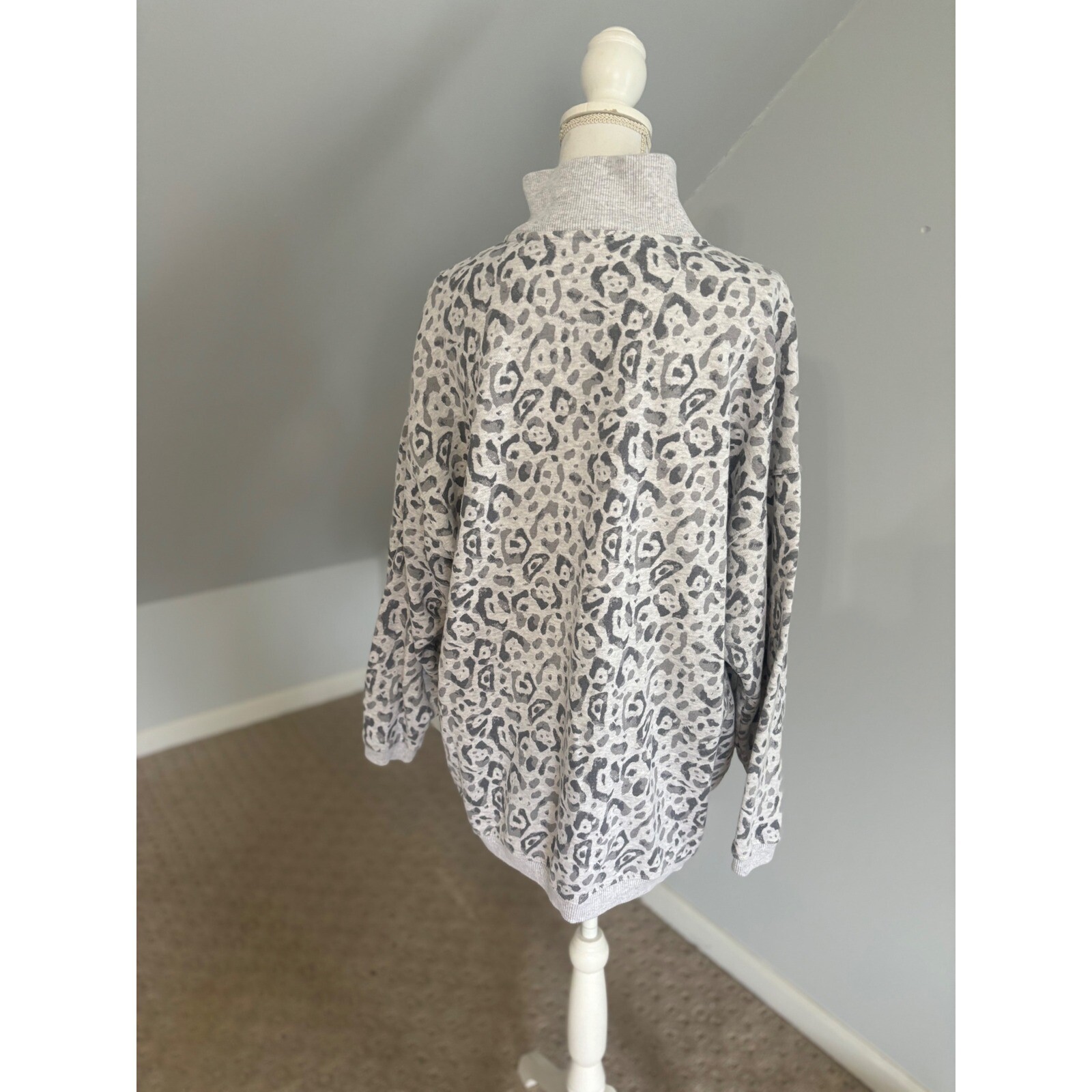 Cozy comfort meets chic style in this Aerie pullover sweatshirt. A striking leopard print in shades of gray adds a touch of wild sophistication to your casual wardrobe. The quarter-zip design allows for adjustable warmth and effortless layering, while the relaxed fit ensures all-day comfort. The high collar provides extra warmth and style. Perfect for running errands, lounging at home, or meeting friends for a casual brunch. Style: Pullover Color: Gray Department: Women Type: Sweatshirt Closure: Zip Features: Quarter Zip, Relaxed Fit, High Collar, Comfort Fit, Long Sleeve Fabric Type: Knit Material: Cotton Blend Character Family: None Pattern: Animal Print Accents: Zipper Sleeve Length: Long Sleeve Keywords: Aerie, pullover, sweatshirt, leopard print, quarter zip, gray, long sleeve, casual, comfortable, athleisure, loungewear, relaxed fit, high collar