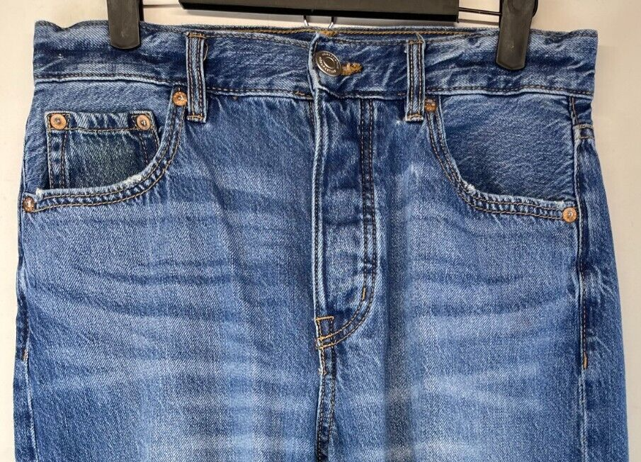 These Aeropostale Jeans are a women's size 8 in a 90's Baggy style with a button fly. Made of denim fabric and featuring a high rise, they have a relaxed fit and a 5-pocket design. The blue jeans have a medium wash and are adorned with distressed accents. The material is 100% cotton, making them easy to care for and machine washable. Perfect for a retro, grunge, or hipster look. Very good preowned condition with normal preowned wear. Please see all photos; specifically for measurements. For clothing specifically, see photos for all measurements and/or any issues if applicable. Pay close attention to the measurements as the size of the garment may quite possibly be different than the actual measurement(s) due to washing, shrinkage, or stretching as these are used clothes. The size in the title is the size on the tag of the garment. See photos for measurements of actual measurements as they may differ. ALWAYS CHECK THE MEASUREMENTS IN THE PHOTOS. This will remove any questions on measurements as well as always cover the possibility of human error in the listing(s) in the case of a typo or oversight. All clothing and shoes have been washed/cleaned, and are cleaned and stored in a smoke free environment. However, please keep in mind that these are preowned items and there is always a possibility of there being preowned dirt, dust, or stray hairs present. I do my best to clean these items with hair collecting products in the dryer after being washed, and by hand with shoes. If shoe trees appear in the photos, they are for photography purposes only to illustrate how the shoes look filled out, and are not included. I am available for questions. I accept or negotiate reasonable offers. Have an amazing day. Thank you.