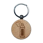 Aerosol Can Spray Paint Hair Spray Engraved Wood Round Keychain Tag Charm