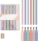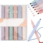 【Soft Pastel Colors】Non-neon, soft and varied colors. Pleasing to the eye, not distracting, will not discourage you from studying or working. Easily group things together and keep them organized. 【Quick Dry & No Bleed】Water based ink, dries quickly. Will not bleed through under proper use unless using very thin papers or pressing very hard while highlighting. 【Smooth Writing Experience】Flat Shape: Comfortable and easy to hold with no pain in your hand and won't roll over while using. The free-flowing ink and the flat shape allow you to write something smoothly. 【Perfect for Daily Use】For journal, planner, work, study, note-taking, jotting down, etc., at school, college, home, office, and even when traveling. Great gift for families and friends. 【Easy to Carry】Lightweight and space-saving, small enough and not bulky to carry. The highlighters come in a holder and a paper box, which you can use to store the highlighters or other small things. Product Description: The Dual Tip Brush Pens are a versatile and vibrant set of markers that every artist needs in their collection. With a total of 6 colors, these brush pens offer a wide range of shades to bring your artwork to life. Each pen features a fine brush tip on one end and a thicker marker tip on the other, allowing you to create fine detailed lines or bold strokes with ease. Highlights: - Set of 6 dual tip brush pens in vibrant colors - Fine brush tip on one end for precise lines and details - Thicker marker tip on the other end for broader strokes - High-quality ink that is blendable and long-lasting - Perfect for artists, professionals, students, and hobbyists Benefits: 1. Versatility: These dual tip brush pens are perfect for various art projects such as illustrations, hand lettering, coloring, and more. The fine brush tip allows you to create intricate details, while the marker tip is ideal for filling in large areas. 2. Vibrant Colors: The set includes 6 vibrant colors that are bold and highly pigmented. Let your creativity flourish with a range of shades that can be blended together to create stunning and unique artworks. 3. Easy to Use: The brush pens are designed for easy handling, ensuring a smooth and consistent flow of ink. Whether you are a beginner or a professional artist, these pens will provide you with precision and control. Specifications: Body material: plastic Size: as shown Function: Marker/Highlighter/Gift Package Included: 6 × Aesthetic Highlighters