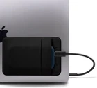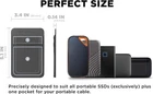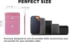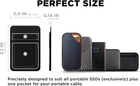 ON THE GO: Do you always carry many things around for meetings and drop them along the way? You don't have to risk losing, misplacing, or damaging your stuff anymore. Free your hands with this stick-on mini organizer holder! No more dropped or forgotten drives. A must have for everyone who needs to have that extra drive and has to take it everywhere with them. Perfect for working while traveling! DOUBLE POCKET DESIGN - MORE SECURE, MORE ROOMS: Includes a built-in safety strap at the top of the pockets so you never need to worry about losing your valuable items. In addition to that, it keeps your things well-organized with an extra storage pouch for carrying your electronic accessories and other smaller personal belongings. COMPATIBILITY: Travel case that fits with portable external Solid-State Drives (SSDs) Sandisk Extreme/ Extreme Pro, Samsung T7, Crucial X8, Apple Magic Mouse or similarly-sized wireless mice, Apple AirPods, Airtag, Samsung SmartTag, Ledger Nano, USB cables, earbuds, earphones, charger, small battery pack, cards and many more. REUSABLE STRONG ADHESIVE: It comes with high quality 3M tape to stick on devices like Macbook laptop, iPad tablet, and even notebooks or as long as the surface is hard, clean and smooth. This tape is powerful because it binds securely but lets you detach and reattach elsewhere, without leaving annoying sticky residue behind. (NOTE: Please clean the surface before applying. It may not adhere properly to soft, matte, or mesh surfaces. Frequently removing and re-attaching will weaken the adhesive.) STRETCHABLE, THICKER, LIGHTWEIGHT AND SLEEK: Pocket is made of synthetic fiber with exceptional elasticity. Backing is 2 mm thick and is designed to be thicker and better in quality than the others in the market. Tested by professionals.