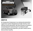 #3000 Air Suspension Compressor Pump Suitable for 2014-2022 Ram 2500, Ram 3500 Car Air Compressor OE Replaces# P3480, 68239571AB, 4154030010, 4154039012 Brand MILLISEC Voltage 12 Volts Recommended Uses For Product Air Brushing Power Source Corded Electric Noise Level 12 Decibels Item Weight 4.2 Kilograms EXEMPLARY QUALITY: Our air ride suspension compressors pump typically have high inflation speeds and accuracy. This allows you to quickly and easily adjust suspension height and stiffness to suit different road conditions and load demands. FUNCTIONALITY: A car air suspension compressor pump is primarily used to supply air to your air springs to maintain their support and shock absorbing ability. COMPATIBLE VEHICLE MODELS: Air suspension compressor suitable for the following vehicle models 2014-2022 Ram 2500 and 2014-2022 Ram 3500 car air suspensions. OEM REPLACEMENT NUMBER: P3480, 68239571AB, 68239571AA, 68349607AA, 4154030010, 4154039012.Each Air suspension bags is thoroughly tested to make sure 100% OE fit. To avoid buying mistakes please check the OE and model list carefully before order. QUALITY SERVICE: We offer excellent customer service and are ready to help with any questions or concerns throughout the purchase and use process. In addition, our products are backed by a 365-day warranty for added peace of mind.