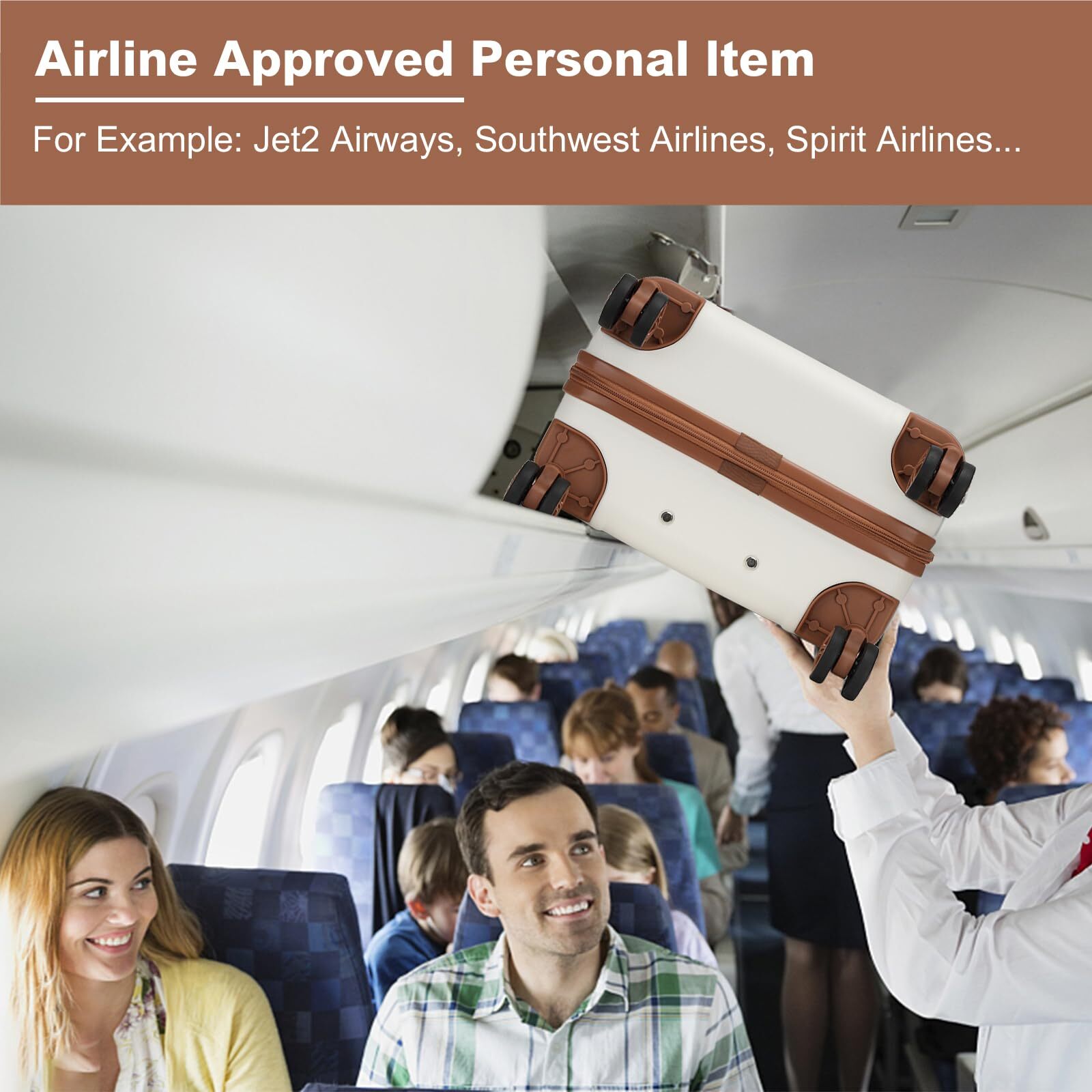 Small Spinner Luggage: Overall Dimensions (including wheels): 21.65" x 13.7" x 8.66" ; Packing Dimensions: 18.9" x 13.4" x 8.6" , Weight ≈ 5 lbs, Volume ≈ 35.9L. This carry-on luggage meets the size restrictions of these airlines: United, American, Delta, Southwest, Allegiant, and more. Lightweight Carry-on Luggage: ➤Material: Made of ABS+PC, this luggage features a durable and lightweight hard shell. It is abrasion - resistant, scratch - resistant, and water - resistant, ensuring long - lasting performance during your travels. ➤: also offers reliable service, giving you peace of mind when you purchase luggage. Travel Luggage with Wheels and Lock: ➤Equipped with 360° silent spinner wheels, this luggage offers an incredibly smooth rolling experience. Whether you're navigating through a bustling airport terminal or a crowded train station, the wheels glide effortlessly, reducing the strain of travel. ➤Features a security and convenience TSA - approved keyless combination lock. This design enables only TSA agents to access and inspect your bags when necessary, all without causing any damage to the lock. Small Hand Luggage Suitcase: ➤Features an adjustable telescoping handle with a push-button mechanism. This allows for easy adjustment to your preferred height, whether you're walking at a brisk pace through an airport or strolling along a sidewalk. ➤The top rubber-coated carry handles are designed for comfortable and effortless lifting and carrying. ➤Bumper feets on side serve to protect the suitcase from scratches, scuffs, and minor impacts, ensuring its longevity during travel. Convenient Preppy Hard Shell Suitcase: The suitcase is fully lined with 210D-polyester, offering a smooth and durable interior surface. It features two roomy packing compartments. The cross-straps are designed to hold your clothes firmly in place. A zipped mesh pocket allows you to keep your items neatly sorted, making it easy to find what you need without rummaging through the entire suitcase.