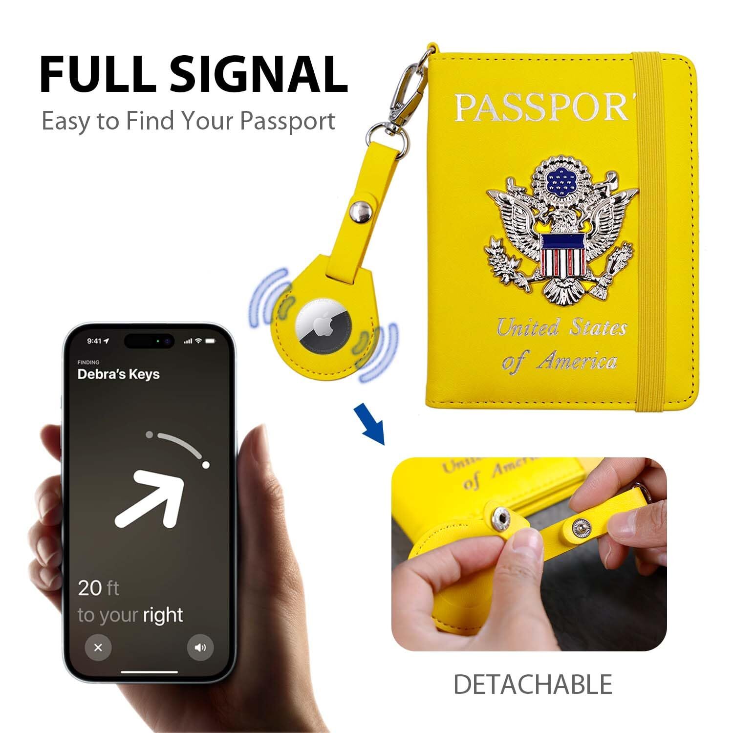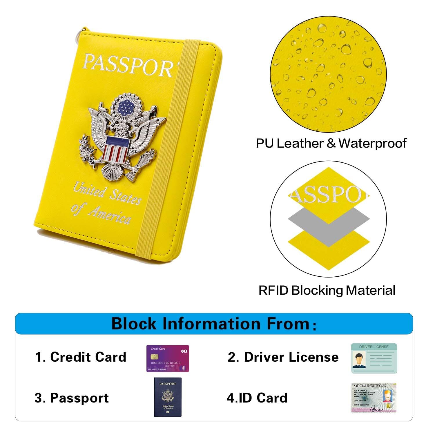 We offer Free Shipping on all order!! Wel come to my stores, The Smart of your choice and satisfaction guarantee. Airtag Passport Holder Cover Wallet Travel for Women/Men, Anti-Lost Passport Wallet with Airtag Holder, Passport Case RFID Blocking, Metal US Badge Passport Book Holder (yellow1) Gallery Product Description Features AIRTAG TRACKING OR DIY:The Airtag Passport Holder Cover Wallet Case comes with a dedicated spot for the Airtag,The perfect combination of airtag and passport ensures you will never lose your passport wallet again.Or you can remove the protective cover of the airtag and decorate it with any pendant you ,such as the keychain, purse,luggage case or backpack.(DOESN'T INCLUDE THE AIRTAG) UNITED STATES GREAT SEAL 3D METAL ICON:The metal U.S. emblem looks cool and doesn't stick out too much so it's still pocket friendly. Our passport holder designed come in a beautiful passport cover of United States Great Seal 3D metal icon.The premium quality of the metal medallion make for an ideal gift for both men and women.Our passport cases also have many color for you to choose. MULTI-FUNCTION:The Airtag Passport Holder Cover Wallet Case is a travel essential that combines functionality, security, and .Comes with an elastic strap which can secure items inside and you can clip the passport, Credit cards , money , SIM cards, air tickets, boarding pass and more, passport cover will not open in your bag.The pen slot is convenient for you to often having to fill out customs forms when traveling internationally. SECURITY PROTECTIVE:RFID blocking shield material inside, Our passport case has a material engineered specifically to block 13.56 MHz or higher RFID signals and protect our important private information stored on your passport and credit cards from unauthorized scans.To ensure the security of your personal information.Besides, the elastic strap is so important to keep everything secure.The passport holder cover case have 3 card pockets,1 transparent window, 1 slot for plane ticket , 1 passports holder slot. Intimate After-Sales Service: Thank you for your trust in the product of our brand . We serve all customer attentively. If you have any questions or problems when you get our passport cover,please contact us and we will offer you a satisfied resolution such as a FULL REFUND or REPLACEMENT! Thank you for your business, your trust and your confidence. It is our pleasure to work with our customers. Delivery ☎ If you have any question. Please do not hesitate to contact us. Please send us message via eBay system. We reply every message within 24 hours. If you did not receive our reply. We think maybe we did not receive your message. Please send us message again. Payment Policy ❤ Payment managed by eBay. Shipping Policy We only send the item according to the address on Ebay, the address can't be changed once we pack the item. Please double check your shipping address it before your send the payment. It should take 3-5 business days for the product to reach your destination. If the product doesn't reach your destination within the time limit, please give it an additional 1-2 business days in case of postal delays and/or possible technical issues. We use a selection of shipping services such as UPS, FedEx, USPS etc. We ship only to the 48 contiguous states of America. We do not ship to Hawaii, Alaska, US Protectorates, APO/FPO addresses and PO Boxes. Local pickups are not offered. If it takes any longer than that, please do not hesitate to contact us to resolve the issues. Feedback ❤ We take our reputation seriously, we buy and sell online, so we understand the value of trust. If you are unsatisfied with your order, please contact us and we will work with you to resolve it to your satisfaction. Return Policy ★ This product comes with 30-Days Money Back Guarantee. ★ If you receive an item and it doesn't work properly or you don't like it because of any reason at all. ★ We have a 100% refund/return policy. We will ship you a new item or refund your money for the full sale amount. ★ For all returned products, buyers MUST contact us for the returning address.