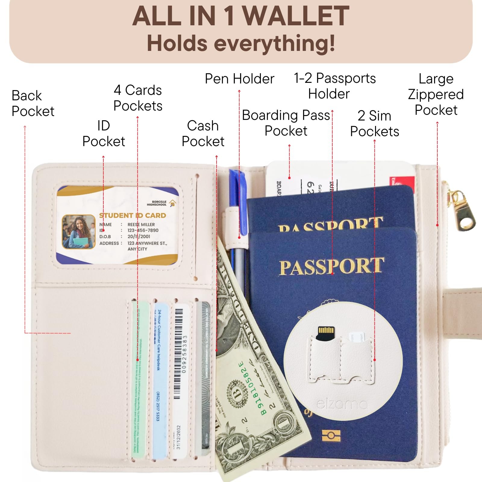 This product is a passport holder cover made of high-quality pu leather, which is soft, durable, and comfortable to touch. It has a classic design with a smooth surface and a solid color, making it suitable for women. The passport holder cover is designed to fit most passports. It also has a slot for your ID card, credit card, or other small cards, making it convenient to carry your important cards with you. The passport holder cover is easy to open and close, and it has a reliable lock to keep your passport safe and secure. It is a great gift for friends, family, or colleagues who travel frequently. Passport Wallet with Airtag Holder: This stylish wallet features an Airtag slot and keyring for easy luggage tracking. AirTag not included. Multiple Organizers: Features 4 credit card holders, 1 id window, 2 sim card slots, pocket for passport, boarding ticket, and airtags. This passport cases is slim, lightweight, and convenient for your travel. Zipper Passport Holder with Pen Holder. This passport holder is zippered on the side to store your coins or loose change. There is also a pen slot on the middle bifold to meet all your travel needs. Rfid Blocking. This passport holder has rfid blocking for maximum security and protection. Made with durable stitching and stylish colors. Your Satisfaction Matters: We stand by the quality of our vaccine and passport holders. If you're unhappy, you can return it within 30 days of purchase.