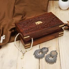 Description Ajuny Handcrafted Decorative Wooden Jewelry Box This exquisitely handcrafted wooden jewelry box is a testament to fine craftsmanship and intricate design. Each detail is meticulously carved by skilled artisans, resulting in a stunning piece that's as functional as it is beautiful. The elephant embossed design adorning the lid adds a touch of exotic charm, making it a standout addition to any décor. Whether placed on a vanity, dresser, or bedside table, it becomes a captivating focal point in any room. Carved from solid wood, this box is not only durable but also serves a myriad of purposes. It's more than just a jewelry storage solution; it's a multipurpose keepsake that can hold your most cherished treasures. Its compact size of 8x5 inches makes it ideal for travel, allowing you to bring your favorite jewelry and trinkets wherever you go. Whether you're jet-setting around the world or simply staying overnight at a friend's house, this box keeps your valuables organized and secure. Whether you're treating yourself or searching for the perfect gift for a loved one, this decorative jewelry box is sure to delight. It's a timeless piece that embodies both elegance and functionality, making it a cherished addition to any collection. Handcrafted with precision by skilled artisans Elegant elephant embossed design Multipurpose functionality for various storage needs Hand-carved from solid wood for durability Compact and travel-friendly size: 8x5 inches 【HAND CARVED ELEPHANT DESIGN WITH BRASS INLAY】: This jewelry box features a brass inlay elephant charm, symbolizing strength, wisdom, and good luck. Combined with floral carvings, it offers a captivating and culturally inspired design. 【DIMENSIONS】: The compact jewelry chest measures 8 x 5 x 2.5 inches externally and 7 x 4 x 2 inches internally. 【DURABLE & VERSATILE】: Made from high-quality sheesham wood, this chest box ensures durability. Perfect for organizing jewelry, keepsakes, and small accessories, it combines practical functionality with a stylish design. 【SHEESHAM WOOD CONSTRUCTION】: Crafted from high-quality Sheesham wood, this jewellery box exhibits exceptional durability and natural beauty. Sheesham wood, also known as Indian rosewood, is known for its rich grain patterns and warm hues. 【AUTHENTIC CRAFTSMANSHIP】: The jewellery chest box is handmade by skilled artisans from Saharanpur, which is renowned as India's largest hub for producing high-quality wooden handicrafts. 【PERFECT GIFT OPTION】: Its timeless design and versatile functionality make this jewelry box a perfect gift for birthdays, anniversaries, weddings, or any special occasion.