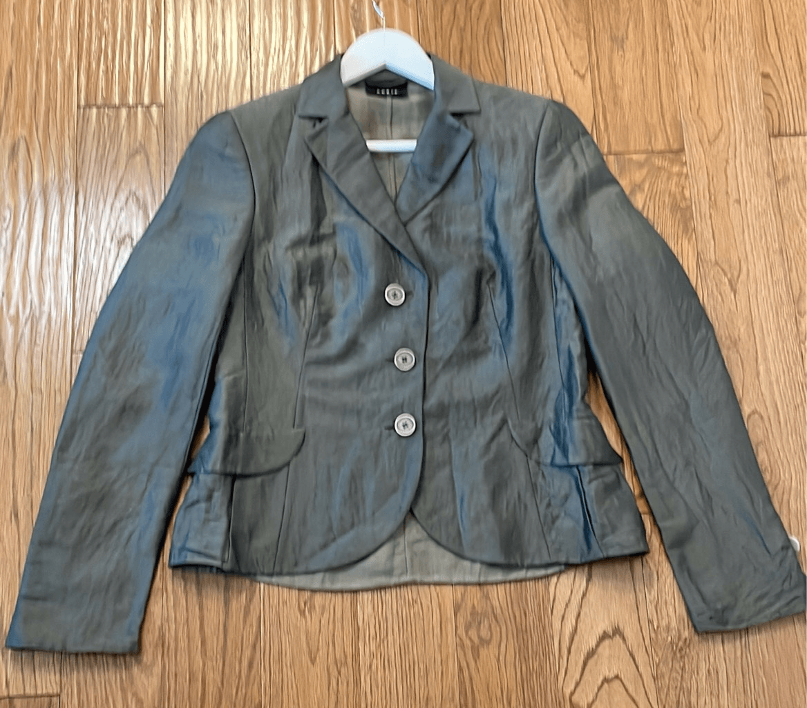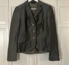 Brand: Akris Description: Linen Wool Solk blend three button closure blazer with front flap pockets Size: 8 Color: grey charcoal Condition: Gently Worn Very Good small blemish on front could be dry cleaned Measurements: Pit to pit: 18” Length: 23” **Bundle and Save!!** all measurements are approximate and taken laying down