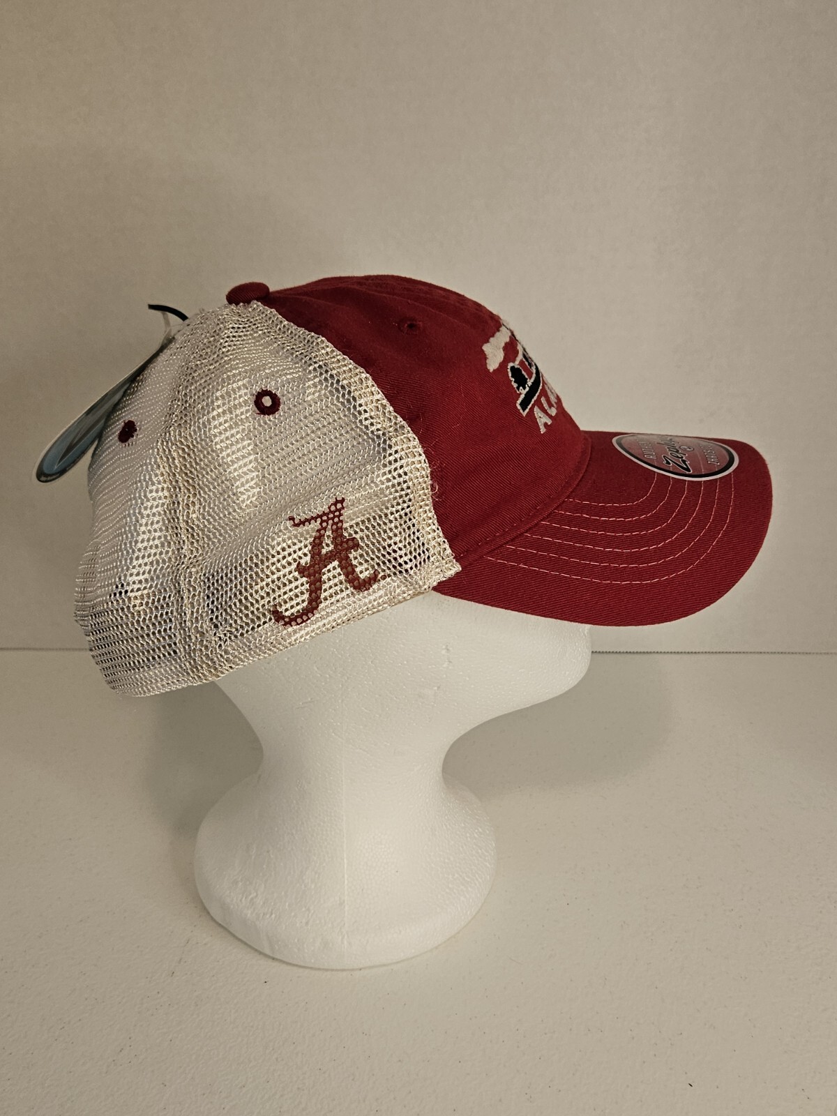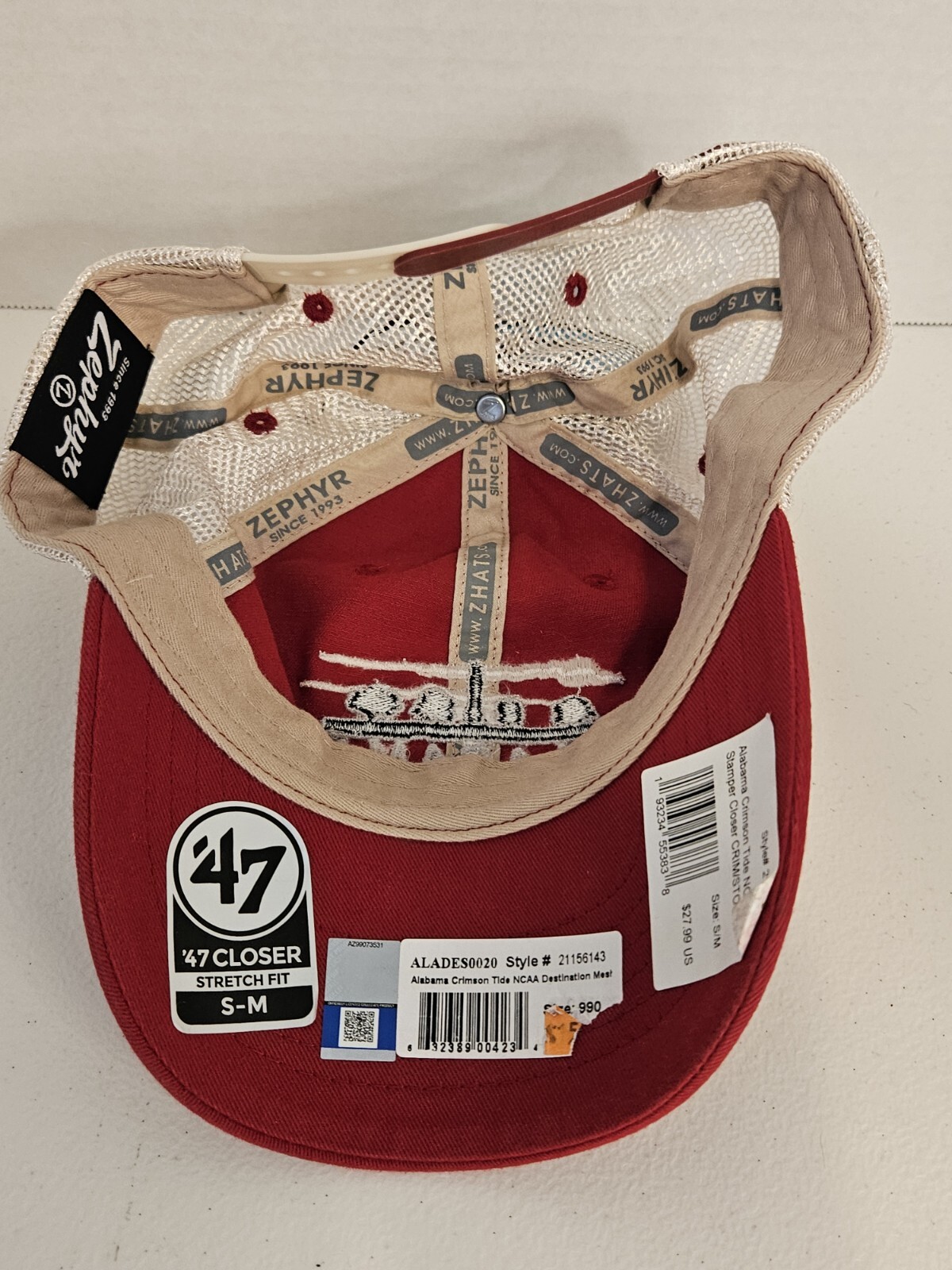 Show off your love for the Alabama Crimson Tide with this stylish Zephyr snapback hat. The cap features the iconic crimson and white colors of the team, making it a must-have for any fan. The hat is one size fits all and is perfect for any occasion, whether you're attending a game or just out and about. The Zephyr snapback hat is made by a reputable brand and is perfect for those who want to show their support without talking about the condition of the item. With its high-quality design, this hat is sure to last for years to come. Roll Tide!