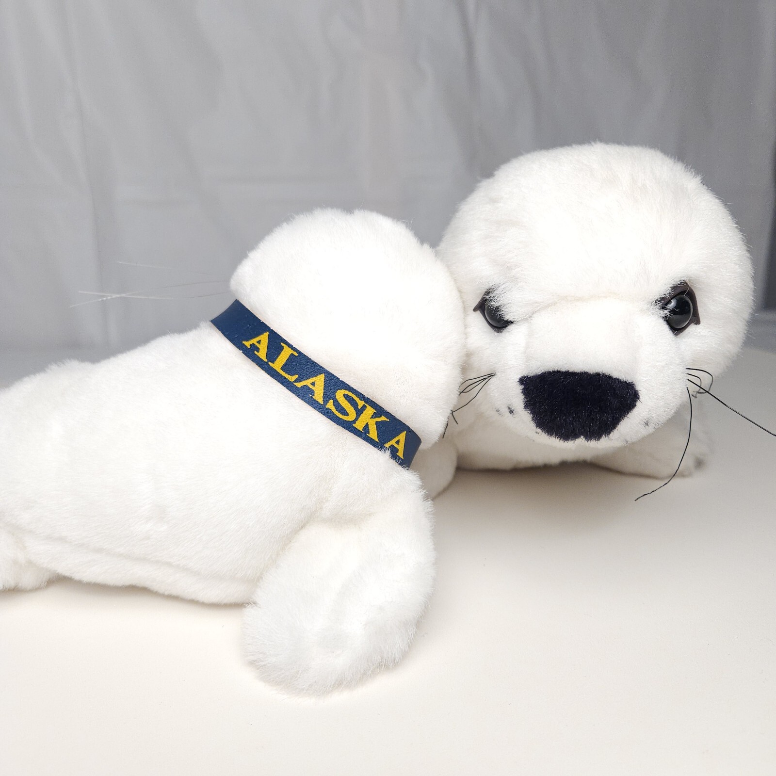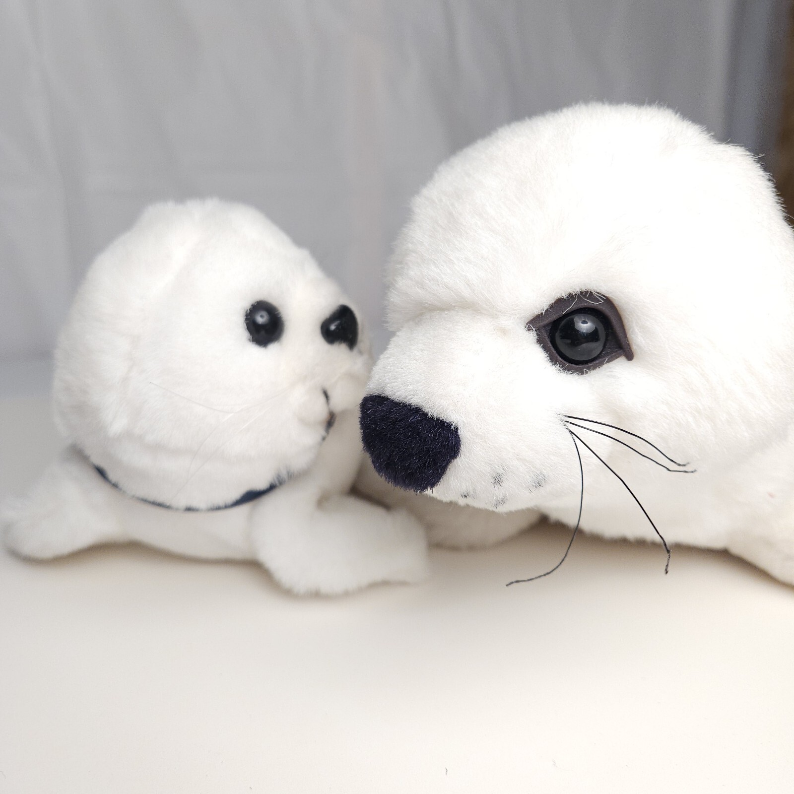 Very cute mom and Pup white seal set Baby is 7" Mom is 13" Baby has a collar that says Alaska. These are from Anchorage Alaska.