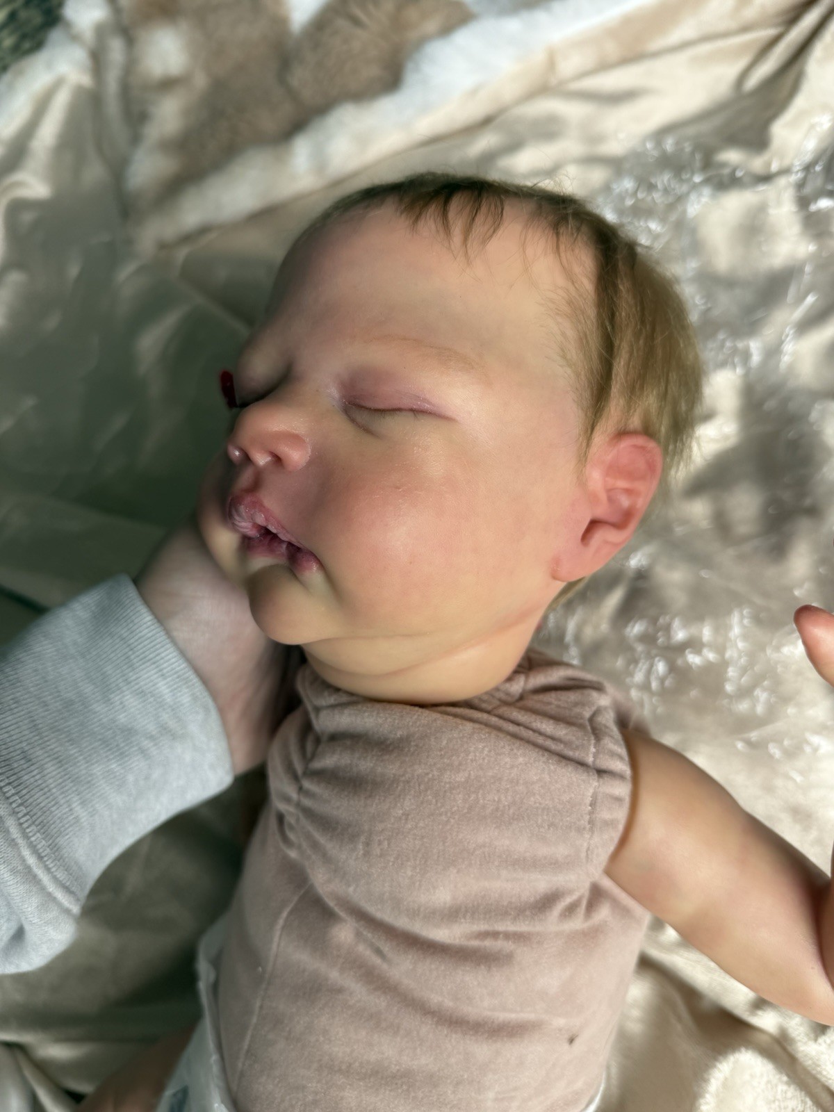 This beautiful reborn baby is the Alessandro sculpt by Cassie Brace, lovingly brought to life with incredible attention to detail. Details: • Hand-painted with realistic lifelike skin tones, veining, and mottling. • Monorooted mohair for a soft, natural look. • Comes with a belly plate for extra realism. • Can take a partial pacifier. • Weighted to feel like a real baby when held. He is in excellent condition and ready for his new home. #reborn#reborndoll#COA#baby#babydoll