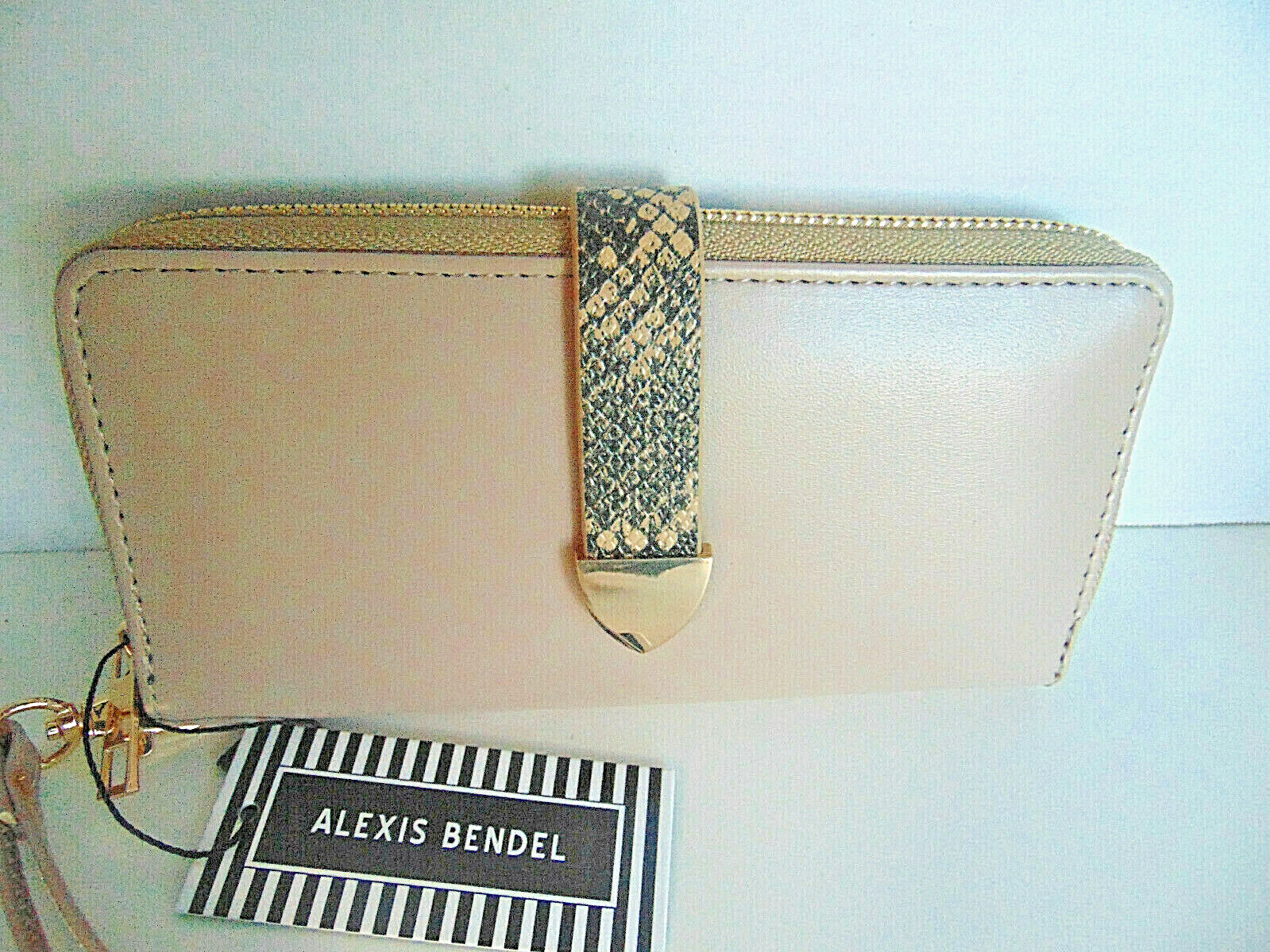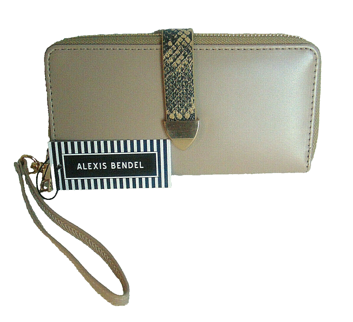 Women's Alexis Bendel Card Cash Wallet Tan Faux Leather Zip Wrstlet, NWT Wallet Features: Faux Leather Snap and zip closure Single Zipper Compartment Checkbook Storage 12 Card Storage slots Detachable Wristlet Strap We ship Mon. - Fri. within 24 hrs. of purchase and payment Please Note: New with Tags items are non returnable if tags are off and item has been worn or used. If there is an issue with your item that we may have missed, please email us via eBay messaging so that it may be corrected. We want you to purchase with confidence and have the best shopping experience. Your Positive Feedback is very valuable to us. Five Star Service is our endeavor. Thank you for stopping by Gumridge Finds! Track Page Views With Auctiva's FREE Counter