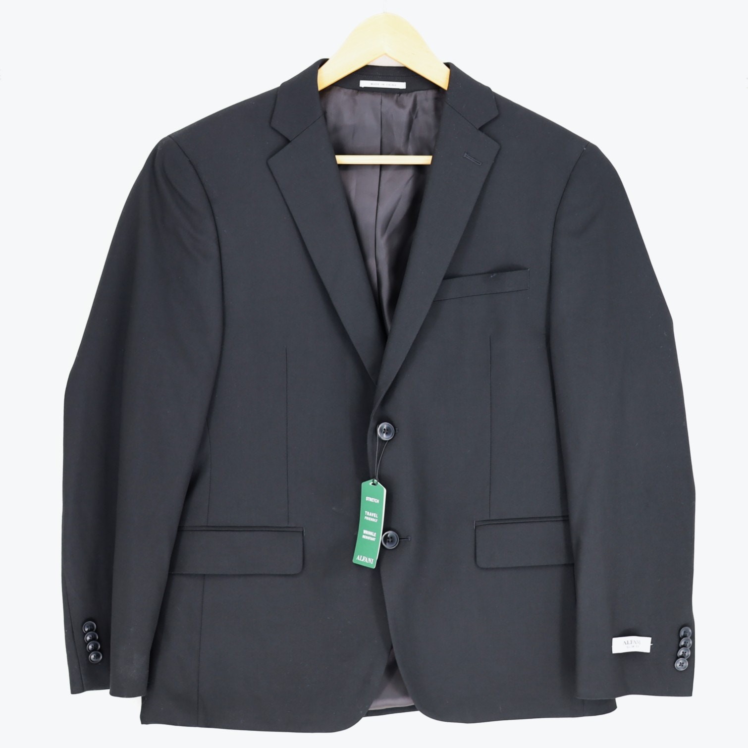 Alfani Men's Black Stretch Solid Slim-Fit Tailored Formal Suit Jacket Size 40S New with tags MSRP $360 Slim fit through the shoulders, chest and waist with higher armholes and sleeves Notched lapel Two-button closure Four-button cuffs Two front flap pockets Left chest welt pocket Side vents Fully lined Stretch performance 69% polyester / 29% viscose / 2% elastane Lining: 100% polyester Dry clean Length 28" Armpit to armpit 20.5" Sleeve 24.5" Shoulders 18"