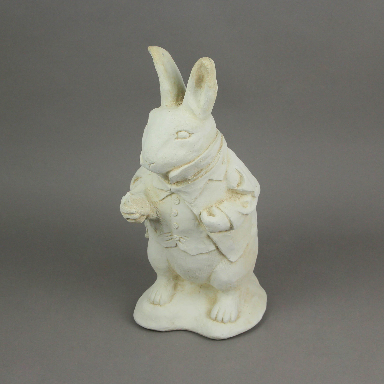 Transform your home, lawn, or garden into your own wonderland with this White Rabbit statue springing from the imaginative pages of Lewis Carroll's beloved classic to mingle among the flowers! Cast in cement with an antiqued white finish, this 14.5-inch high, 7.5-inch long, 6.25-inch wide statue features the White Rabbit wearing his iconic top coat, and holding a stopwatch in his hand. Whether it's at your home or the home of a friend, this White Rabbit statue will look amazing and makes a great gift any Lewis Carroll or Alice in Wonderland fan is sure to love! Our eBay Store About Us Add to Favorite Sellers Alice in Wonderland White Rabbit Antiqued White Finish Solid Cement Statue 14 Inch OVERALL SIZE - 14.5 Inches High, 7.5 Inches Long, 6.25 Inches Wide DURABLE MATERIAL - Expertly Cast in Cement AGED FINISH - Antiqued White Finish Provides a Great Color Contrast To Gardens and Flower Beds WHIMSICAL DECOR - Perfect For Home, Garden, Yard or Patio MAKES A GREAT GIFT - for Any Occasion and Fans of Lewis Carroll Stories Transform your home, lawn, or garden into your own wonderland with this White Rabbit statue springing from the imaginative pages of Lewis Carroll's beloved classic to mingle among the flowers! Cast in cement with an antiqued white finish, this 14.5-inch high, 7.5-inch long, 6.25-inch wide statue features the White Rabbit wearing his iconic top coat, and holding a stopwatch in his hand. Whether it's at your home or the home of a friend, this White Rabbit statue will look amazing and makes a great gift any Lewis Carroll or Alice in Wonderland fan is sure to love! Product Details Color Off-white Height 14.25 Length 6.25 Weight 15.1 LB