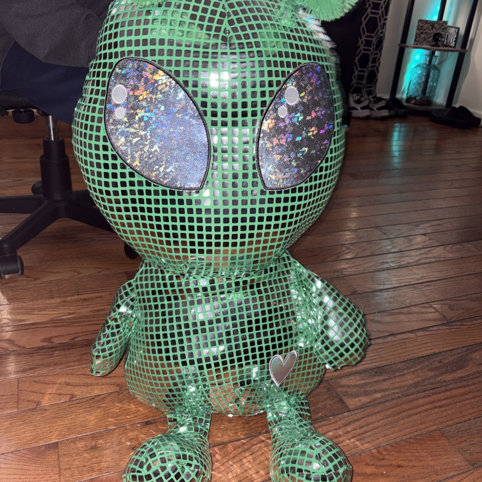 The Alien Doll Stuffed Plush is a jumbo-sized green disco-themed toy from Walmart. Measuring 38 inches tall, this plush is perfect for fans of the Alien franchise looking to add a unique and cuddly creature to their collection. The Walmart brand ensures quality and authenticity, making this plush a fun and quirky addition to any toy or stuffed animal collection.