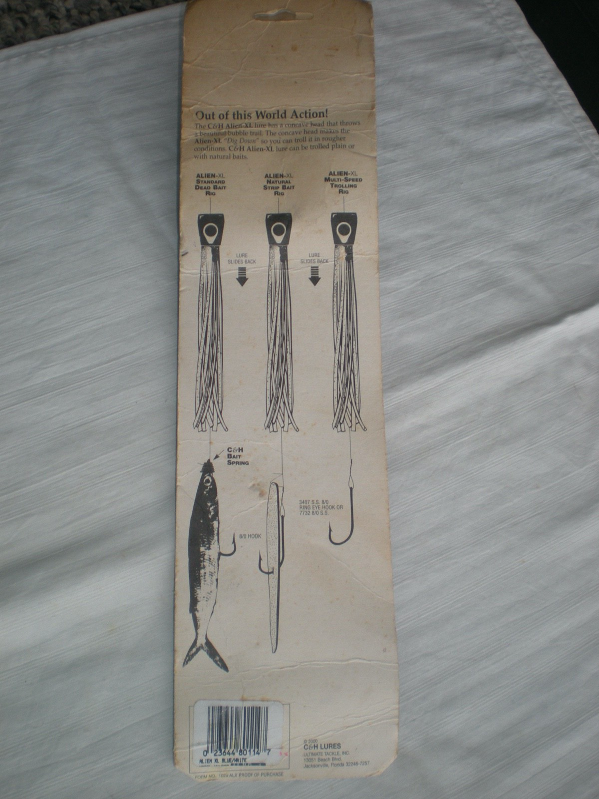 Items for sale maybe used and have signs of wear. PLEASE INSPECT PHOTOS before purchase. For sale: Alien-Xl C & H Trolling lure - 11" Blue and White - New Old lure, Plastic still soft. YES! I can combine multiple wins to save on shipping whenever it makes sense. Usually shipping is just $1 more for each additional lure for domestic. COMBINED SHIPPING: You MUST wait for a combined invoice to get the shipping discount. eBay requires that once you pay, I MUST ship the item immediately and that item is no longer eligible to be combined with anything else. A combined shipping invoice will be sent to you usually within 24 hours of the auction's end. Thanks for looking and I hope that you found something you like. Payment expected within 3 business days.