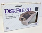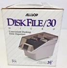 Allsop Disk File/30 3.5" Micro Floppy Disk Storage Case Organizer. Excellent condition. Appears to have been used very little. Shows normal signs of wear for older daily use office item. Holds up to 30 micro disks 3 1/2". Includes four dividers and original box. From a pet friendly and smoke free home.