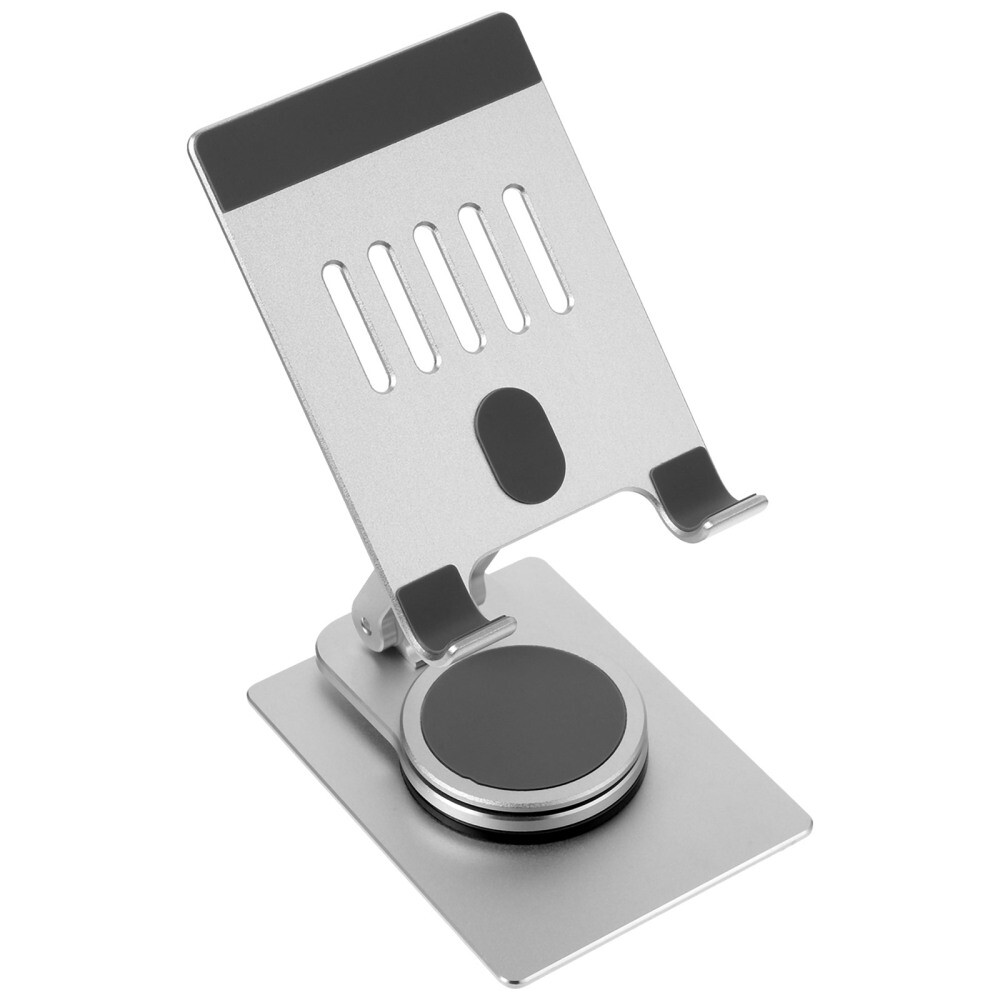 This tablet mount is a game-changer! The sturdy aluminum alloy design holds my device securely while the rotating hinge makes adjusting angles effortless. Perfect for watching videos or following recipes in the kitchen—no more wobbly stands or slipping phones. The foldable design makes it super portable, and the sleek metal finish looks premium. Works with multiple tablet sizes too. Definitely worth every penny for hands-free convenience!
