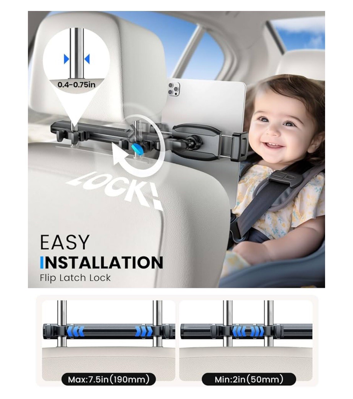 This tablet car headrest mount is a game-changer for road trips! The sturdy aluminum build keeps my iPad secure, and the large clamp fits perfectly. My kids love watching movies in the backseat, and it’s so easy to adjust. A must-have travel accessory for families!