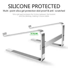Aluminum Alloy Laptop Stand Item Specification: Two Styles For You To Choose !!! Features: 1. Sturdy & Portable: The office computer stand is totally made of thickened Aluminum alloy, so the stand is sturdier and has less wobbly. Moreover, the stand is detachable and easy to install without tools, so the lightweight laptop stand is really portable. 2. Raised front edges hold the laptop in place while in a tilted position and rubberized non-slip pads support your laptop in place to prevent unwanted scratches to your laptop. 3. The slim compact stand elevates your laptop to a perfect eye level and prevents you from hunching over your screen, which reduces neck and shoulder pain. Moreover, the edge of the stand is so smooth that protects you from being scratched. 4. The ventilated elevator desk stand only has two holder hands, so there is more space to enable the heat to vent and keep your notebook computer from overheating. 5. You can organize your office items such as keyboard and mouse under the thin stand. 6.The ergonomic design makes for easy watching and typing, relieving neck, shoulder and spinal pain. 7.Do not worry about the heat of your laptop when you are working or studying. 8.Open aluminum frame design allows for natural air ventilation to keep your laptop cool. Notice: 1.Due to the different monitor and light effect, the actual color may be a slightly different from the picture color. 2.Please allow 1-3cm differs due to manual measurement. Package Includes: 1 x Laptop Bracket(Original Packaging)
