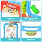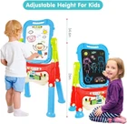 Amagoing Easel for Kids, Adjustable Standing Art Toddler, Blue Product Details Color: Blue Product Dimensions: 17"D x 13"W x 7"H Material: Plastic Brand: Amagoing Item Weight: 5.6 Pounds Style: Compact Assembly Required: Yes Model Name: 05081 Number of Items: 12 Easel Type: French Easel Manufacturer: Amagoing Item Weight: 5.6 pounds Item model number: 05081 Multi-use Easel For Toddler: To inspire painting, drawing, and countless ways to play creatively and strengthen fine motor skills, imagination, concentration, communication, spatial & visual awareness and lots more.It is the best gift for children, and the best product to accompany children to grow up and educational. 360°Free Rotate & Height Adjusting: This double-sided easel has an adjustable height between 26" and 34.6". It is easy to adjust the height to sure meet the different needs of children aged 3 years old. The quick flip board also make the board easy to access and painting at any angel. Double-sided Magnetic Art Easel: It has a chalkboard on 1 side and a dry erase board on the other. equipped with a magnetic dry erase board and a whiteboard. The whiteboard supports watercolor painting, while the blackboard can be used to practice calligraphy and study. Coming with magnetic sticks, kids can conveniently drawing on craft paper in easel. Triangle bracket makes the drawing board more stable. Compact And Lightweight. Made of high quality ABS plastic which prevent you and kids from scratch while assembling or painting compared with wooden easel. Easy to fold flat for storage or carry on. Portable Hand-held Painting Easel. The painting easel assemble and detach extremely easy. So if your kids are tired of standing, you can disassemble the easel to a portable hand-held easel. Thus kids can put it on the ground, the bed or sofa and lie down to paint.