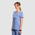 The Amara 1-Chest Pocket Women's Scrub Top by Easure is a stretchy medical uniform top designed for women. Made of polyester, rayon, and spandex, this V-neck top features a solid pattern and a convenient chest pocket. Perfect for medical professionals looking for comfortable and functional work clothing. Stay comfortable and professional with the Amara Women’s V-Neck Scrub Top, designed for performance and everyday wear in medical environments. Crafted from a premium polyester, rayon, and spandex blend, this scrub top provides excellent stretch, breathability, and ease of movement. The flattering V-neck silhouette delivers a modern look, while the functional chest pocket adds practical storage. Wrinkle-resistant fabric helps you stay neat and confident throughout your shift, making this scrub top a dependable choice for busy professionals. Perfect for hospitals, clinics, nursing homes, and healthcare settings