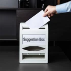 Product Description Amazon Basics ABS Ballot Box With Lock From the Manufacturer Amazon Basics Durable construction: made of rugged ABS plastic in a non-transparent white color Keyed entry: locked box requires a key to open; set of 2 keys are included Versatile: can be used for collecting voting ballots, letters, suggestions, complaints, and more Customizable: 6 replacement tags allow for creating unique signage; front window cover made of plastic protects the tags Warranty: backed by an Amazon Basics 1-year limited warranty